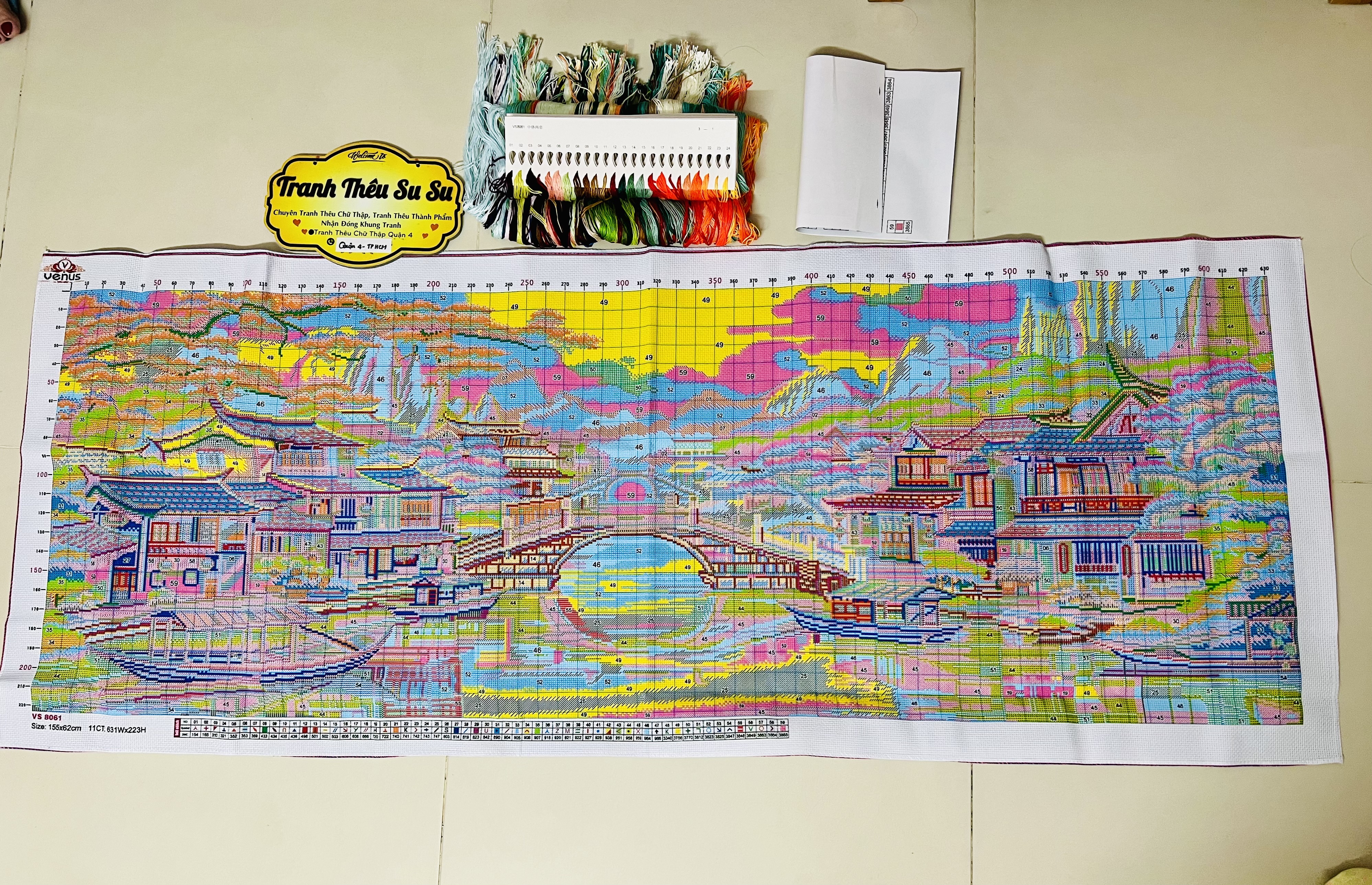 Sản phẩm này là tranh của hãng Venus phôi đẹp, vải dày, chỉ tốt. Vị trí khách cần thêu trên tranh: thêu kín bức tranh Kích thước: (150 x 60 cm) Sản phẩm tranh thêu
