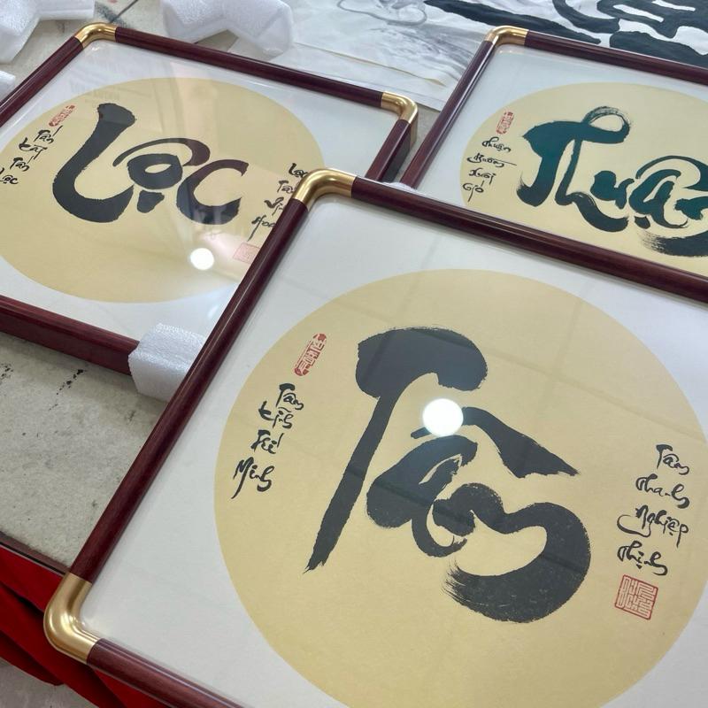 ✨Tranh thư pháp viết vẽ tay đóng khung gỗ trang trọng thẩm mỹ 35x35cm