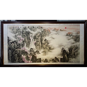 Mua tại TiktokChất liệu tranh thủy mặc Non nước hữu tình,vẽ mực nước trên giấy xuyến, bồi viền tranh bằng vải gấm,
