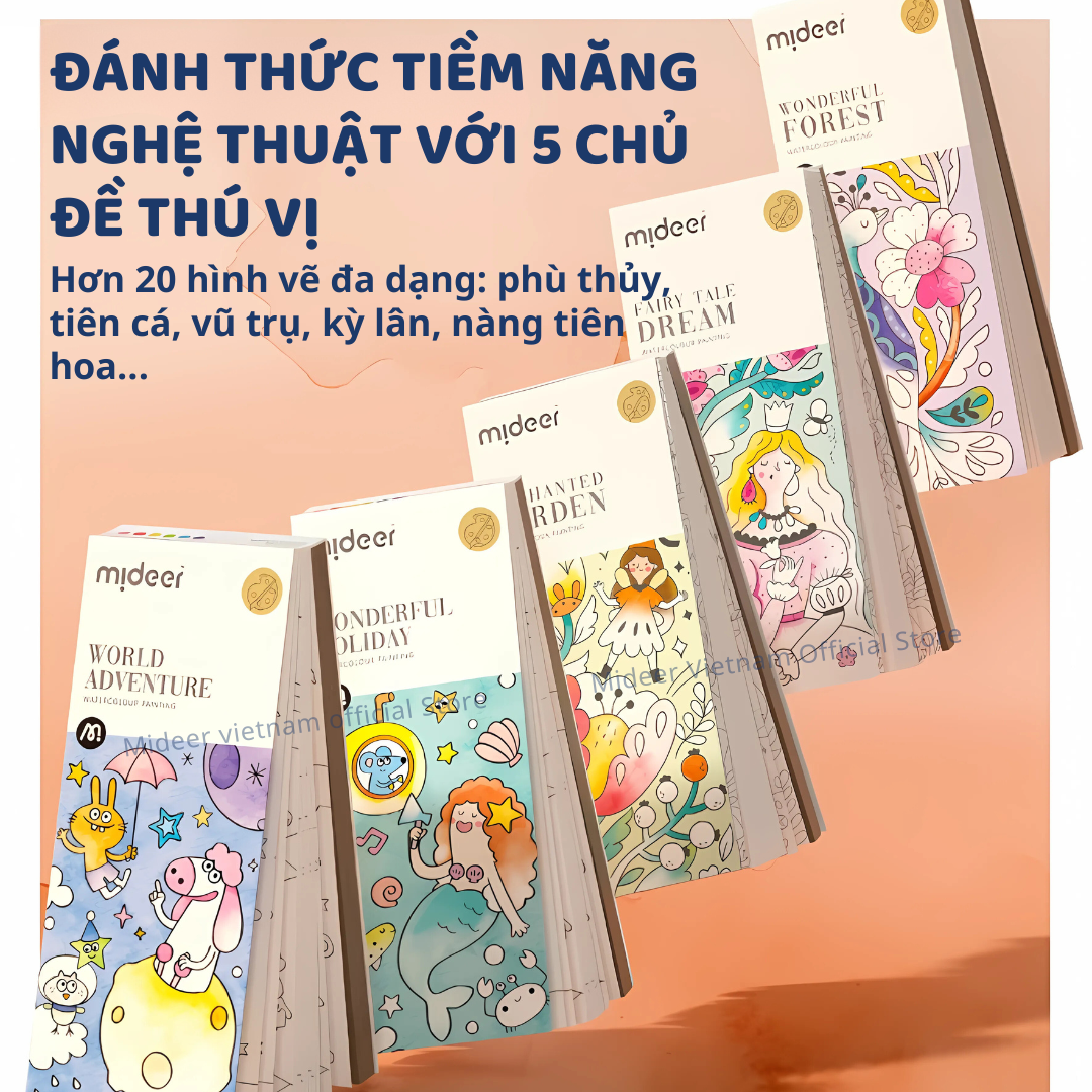 CHÀO MỪNG BẠN ĐẾN VỚI MIDEER VIETNAM HÀNG SẴN SHIP HỎA TỐC, BẢO HÀNH CHÍNH HÃNG ————————————— Tranh Tô Màu Nước Kèm Cọ Mideer Watercolour Painting cho bé Bộ tranh tô màu nước mang đến