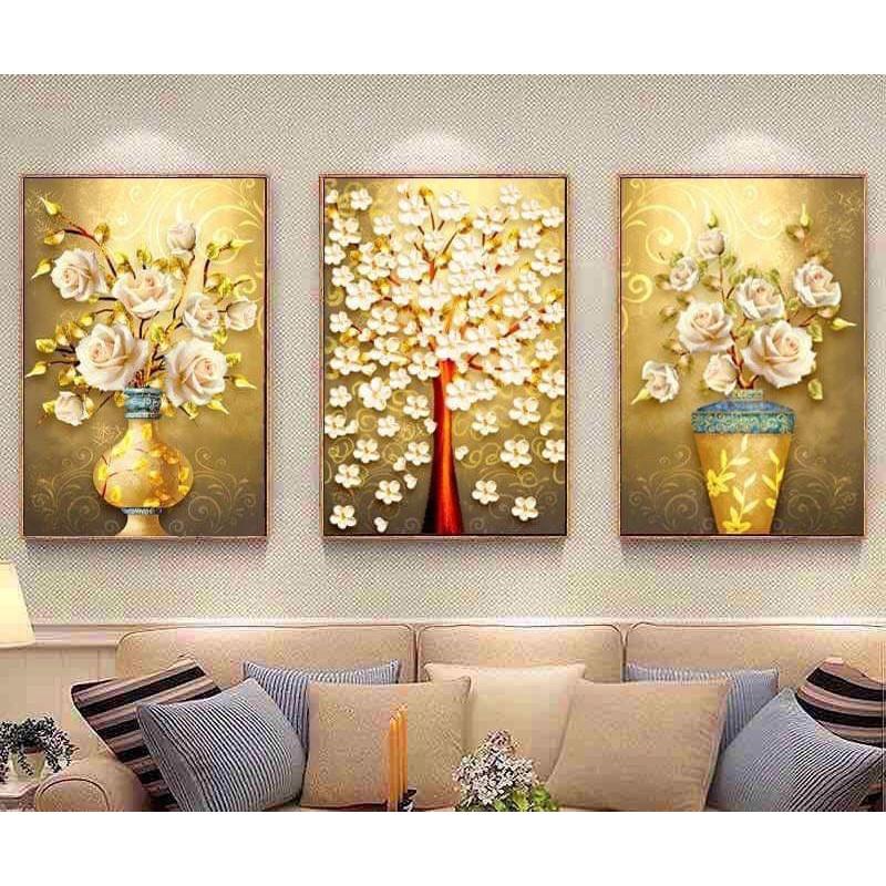 Tranh tráng gương cáo cấp bộ 3 bức bằng nhau tranh hoa hiện đại