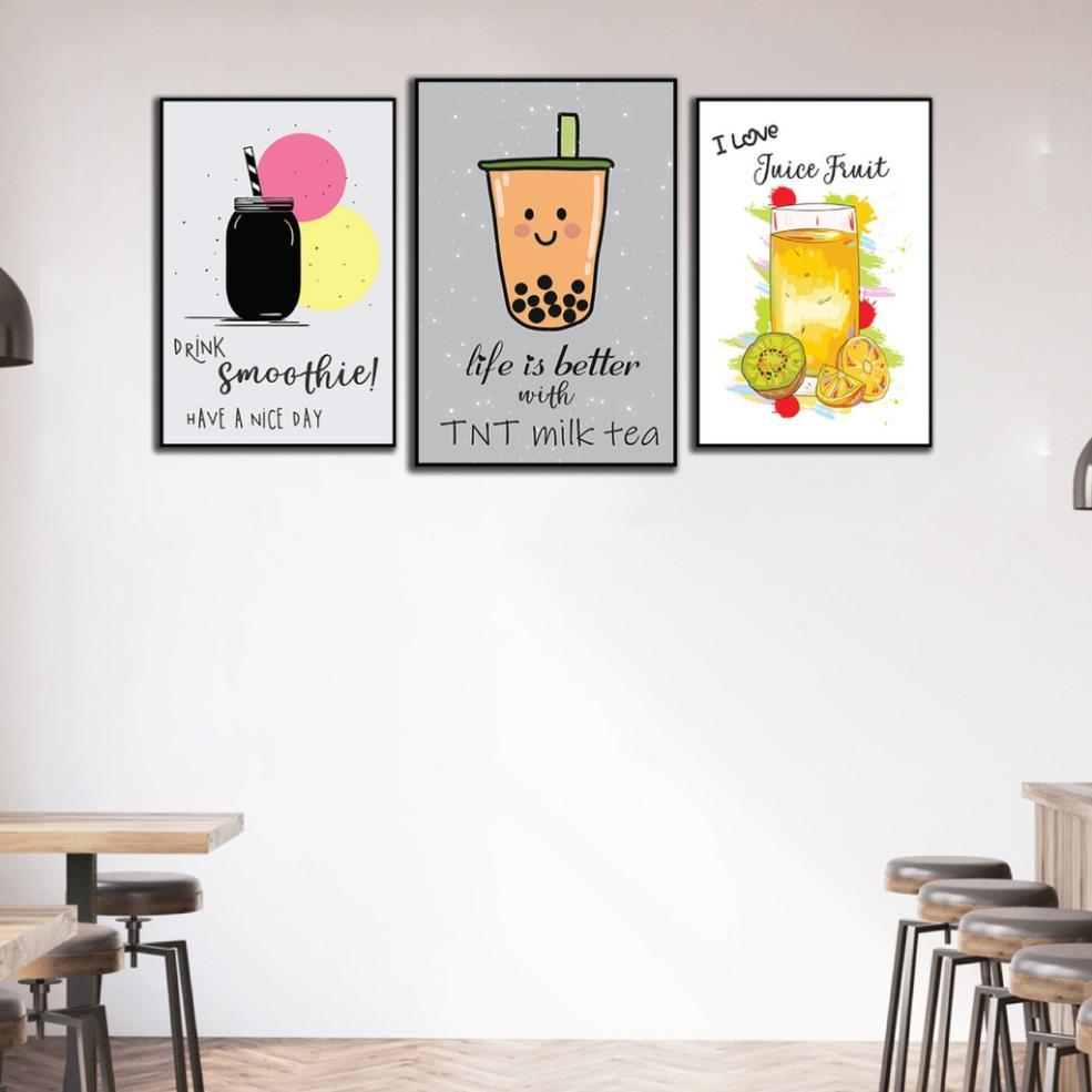 • Tranh với chủ đề màu sắc đa dạng sẽ tạo thành nét phong cách riêng, ấn tượng cho quán trà sữa của bạn, trở thành điểm nhấn giúp thương hiệu quán của bạn đi vào lòng tín đồ trà sữa.