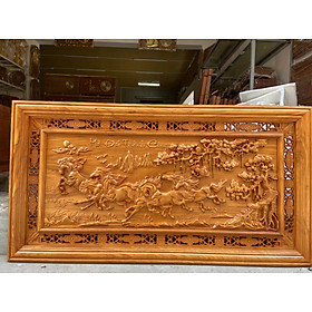 Tranh gỗ mã đáo thành công khung đục 1.27m