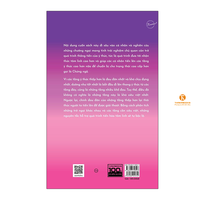 [ThaiHaBooks] Nội dung cuốn sách này đi sâu vào cá nhân và nghiên cứu những chướng ngại mang tính trải nghiệm chủ quan cản trở quá trình thăng tiến của ý thức, tức là quá trình đưa tới nhận thức tâm linh cao hơn và giúp các cá nhân tiến lên các tầng ý thức cao hơn nữa để chuẩn bị cho trạng thái cao cấp hơn gọi là Chứng ngộ.