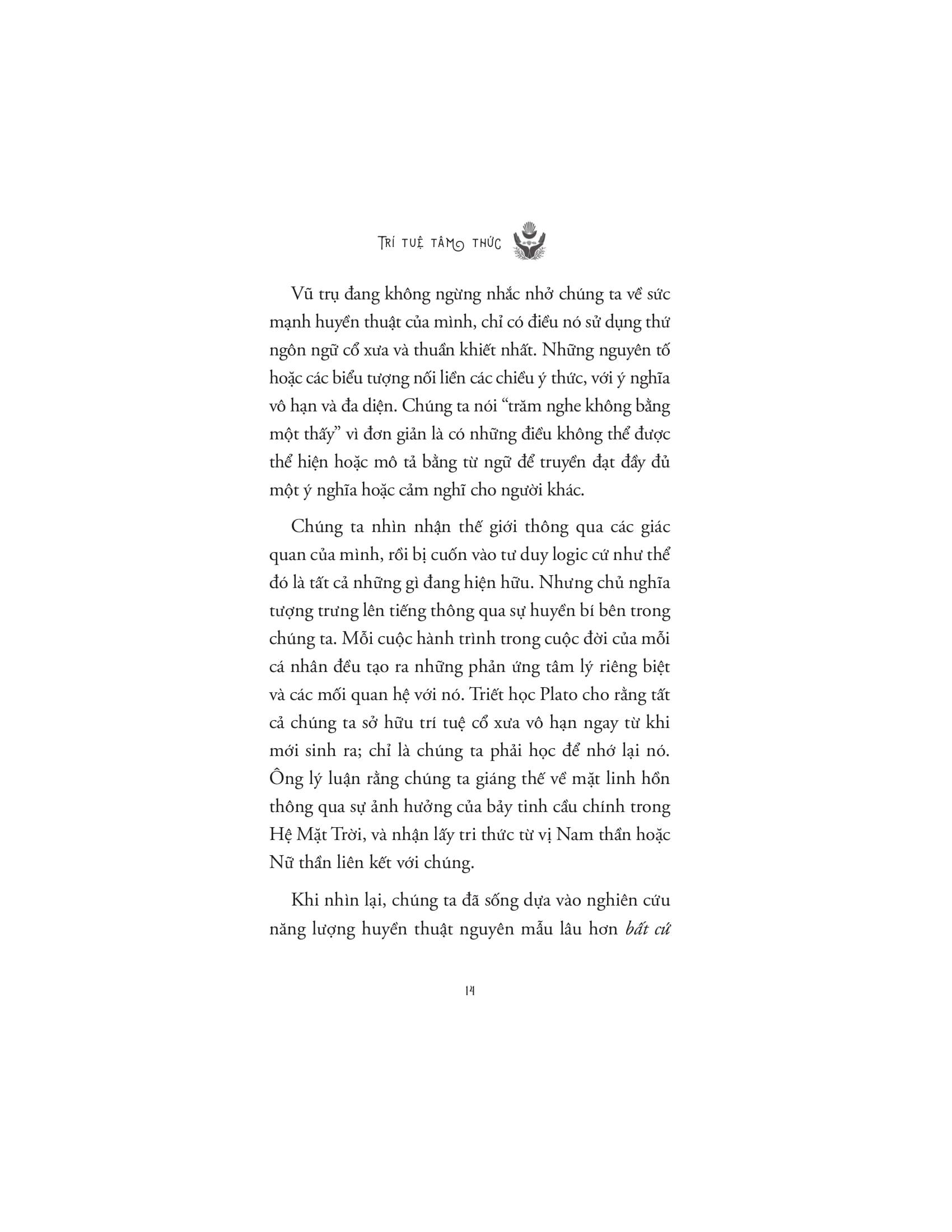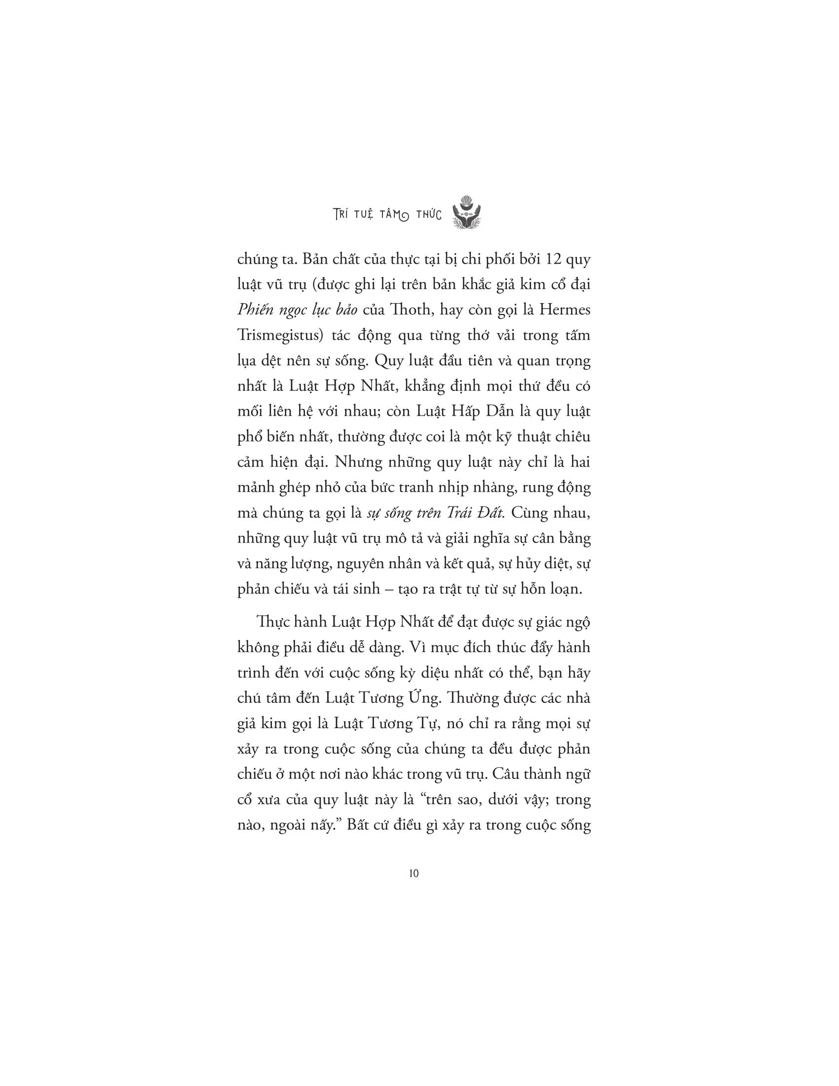 Thông qua việc kết hợp trực giác và các phương pháp huyền học, như tarot, chiêm tinh, và năng lượng chữa lành, “ Trí tuệ tâm thức” giúp người đọc phát triển sự nhạy bén và tinh tế trong việc giải mã các dấu hiệu từ vũ trụ. Cuốn sách cũng tập trung vào việc phát triển khả năng lắng nghe trực giác, sử dụng các công cụ huyền học để tăng cường sức mạnh tinh thần và dẫn dắt bản thân trên con đường sống đầy ý nghĩa.