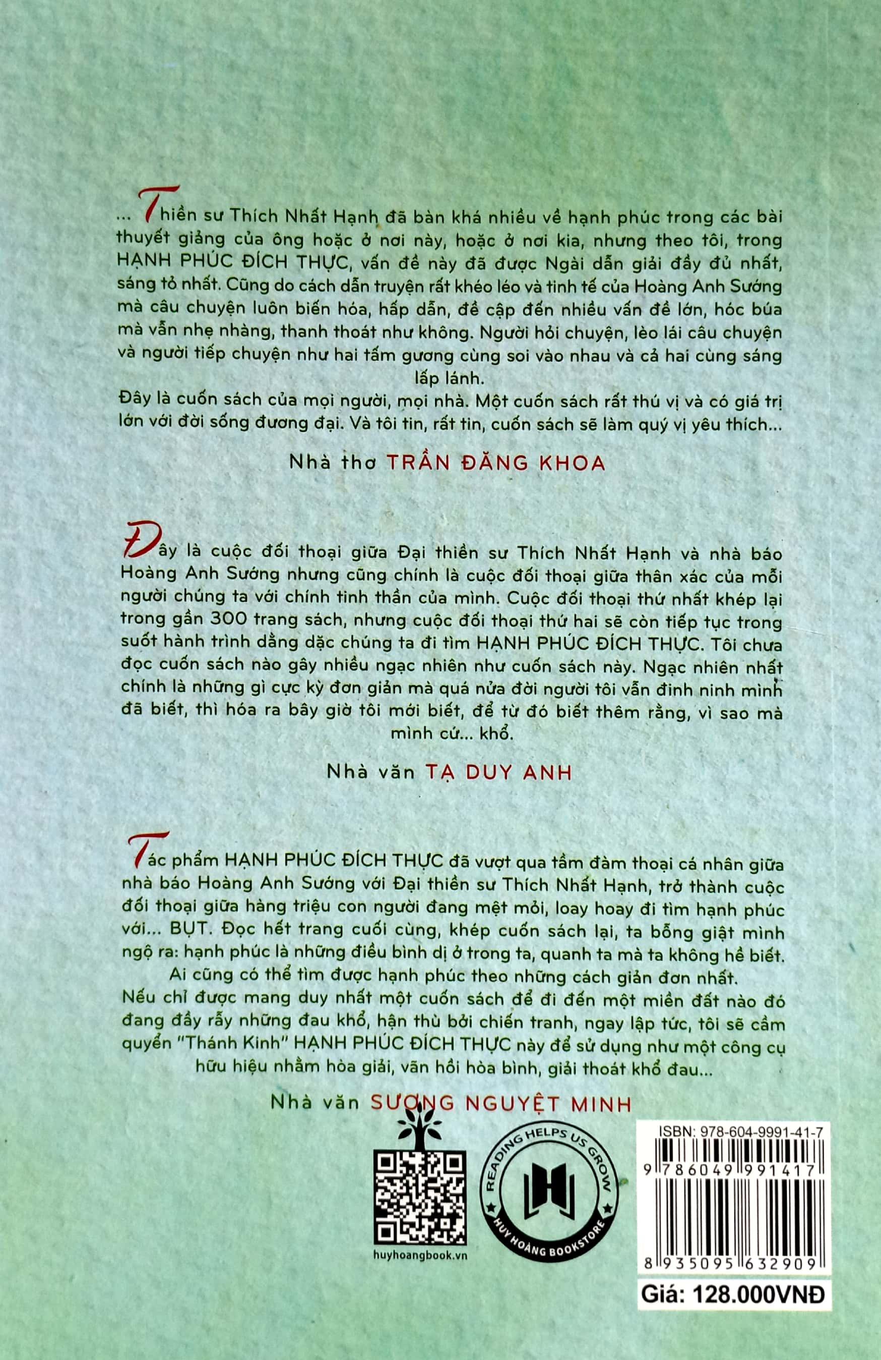 Hạnh Phúc Mộng Và Thực (Tái bản năm 2022) Nhà xuất bản : Nhà Xuất Bản Thế Giới. Công ty phát hành : Phương Nam Book. Tác giả : Thích Nhất Hạnh. Kích thước :