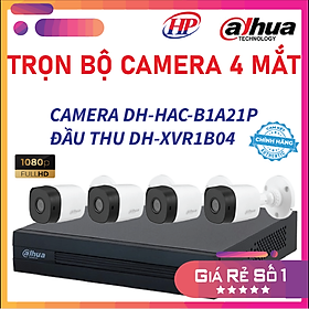 ✨Trọn bộ 4 camera DH-HAC-B1A21P Đầu thu 4 cổng XVR1B04 đầy đủ phụ kiện, Hàng chính hãng
