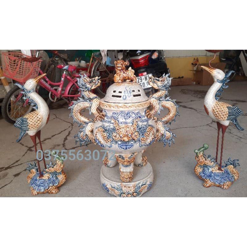 Bộ đỉnh hạc trên có 3 size chính H43cm , H50cm và H55cm Xuất sứ: Bát Tràng