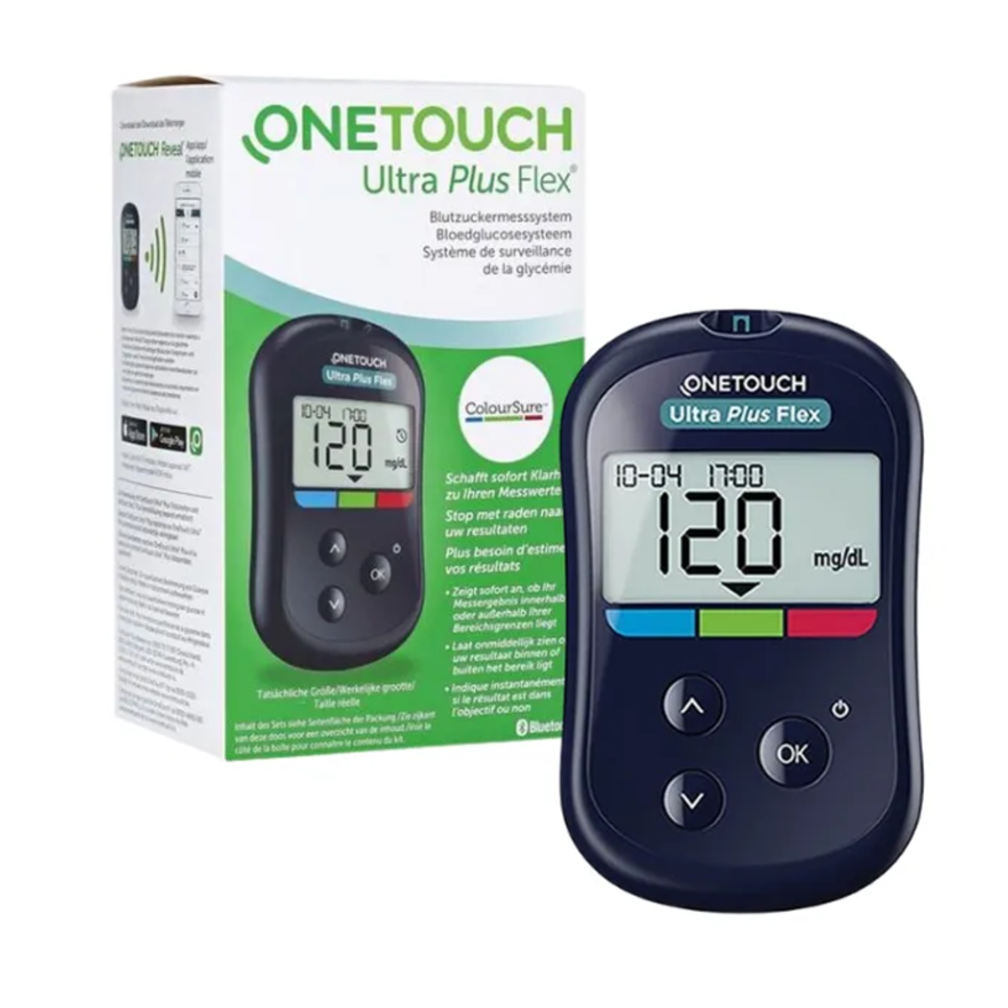 - Bao gồm Bút và 10 kim và hộp 25 que thử Đối với người bệnh tiểu đường thì ngoài chế độ ăn uống khoa học và tuân thủ theo phác đồ của bác sỹ thì việc có được cho mình một chiếc máy đo đường huyết tại nhà là vô cùng cần thiết. Và yếu tố đầu tiên để mua đúng hàng chính hãng là bạn phải tìm được đúng địa chỉ bán hàng chất lượng. One Touch Ultra Plus Flex đảm bảo 100% sản phẩm là hàng chính hãng, bảo hành chính hãng trọn đời 1 đổi 1. Máy đo đường huyết One Touch Ultra Plus Flex cho kết quả đo đường huyết nhanh chóng và chính xác tới 99%. Máy đo đường huyết One Touch Ultra Plus Flex dành cho người bị đái tháo đường, được sử dụng ở nhà hoặc dành cho chuyên gia chăm sóc sức khỏe để sử dụng cho các bệnh nhân tại phòng khám như là một dụng cụ hỗ trợ để theo dõi hiệu quả và kiểm soát bệnh đái tháo đường. Tương tự như các dòng máy đo đường huyết khác, One Touch Ultra Plus Flex được dùng để đo lượng Glucose (đường) trong các mẫu máu tươi của mao mạch và được lấy từ đầu ngón tay rất dễ dàng. Máy đo đường huyết One Touch Ultra Plus Flex dễ dàng kết nối (đồng bộ hóa) với rất nhiều thiết bị không dây. Kết quả đo được gửi đến thiết bị tương thích thông qua Bluetooth hoặc kết nối cáp USB.