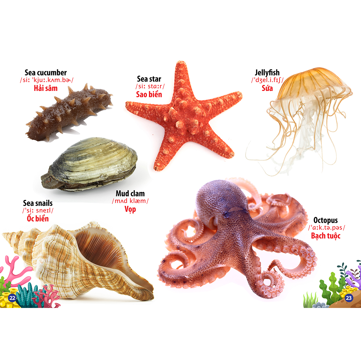 vật dưới nước, phương tiện giao thông , chữ cái, hoa quả, … rất gần gũi với các bé để bé có những hình dung bước