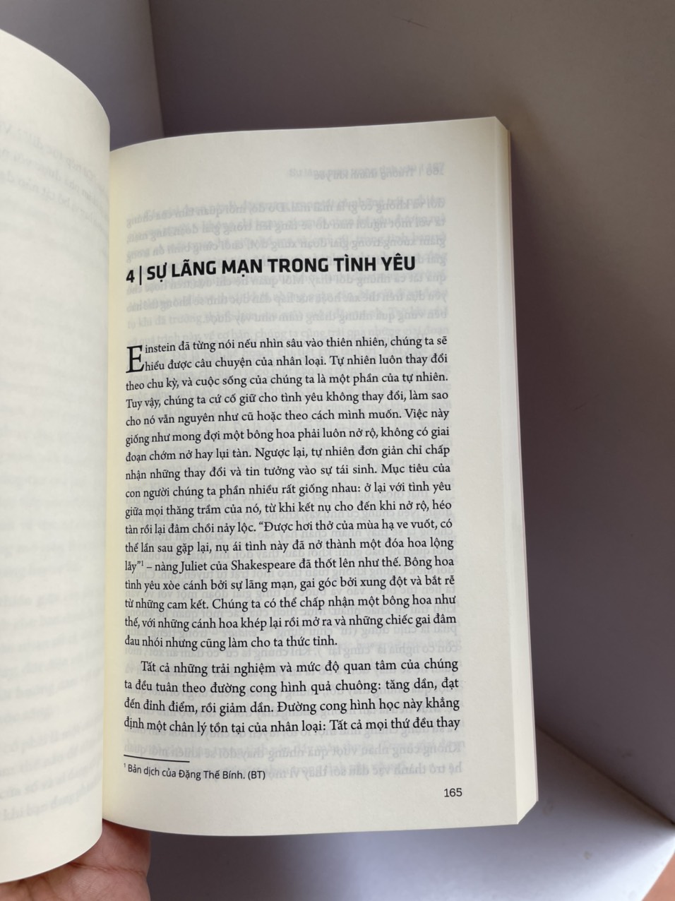 Trưởng thành khi yêu cùng độc giả khám phá năm đặc tính của một tình yêu tỉnh thức và vai trò quan trọng của chúng trong các mối quan hệ. Nền tảng của một tình yêu trưởng thành chính là sự cam kết trao cho nhau những gì tác giả gọi là “Năm Chữ A”: Attention – Quan Tâm, Acceptance – Chấp Nhận, Appreciation – Trân Trọng, Affection – Yêu Thương và Allowing – Cho Phép. Với rất nhiều bài thực hành dành cho các cặp đôi và cả người độc thân, Trưởng thành khi yêu giúp người đọc hiểu sâu và có cái nhìn tích cực về hành trình yêu thương trọn đời.