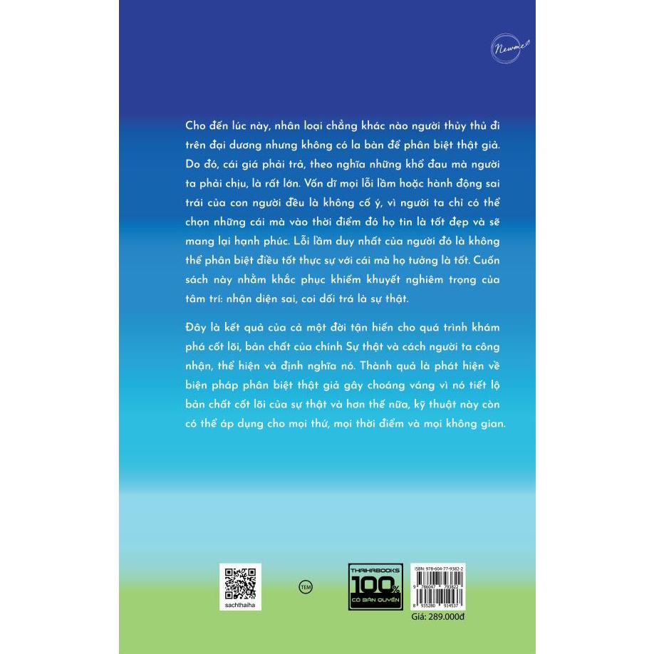 Đây là kết quả của cả một đời tận hiến cho quá trình khám phá cốt lõi, bản chất của chính Sự thật và cách người ta công nhận, thể hiện và định nghĩa nó. Thành quả là phát hiện về biện pháp phân biệt thật giả gây choáng váng vì nó tiết lộ bản chất cốt lõi của sự thật và hơn thế nữa, kỹ thuật này còn có thể áp dụng cho mọi thứ, mọi thời điểm và mọi không gian.
