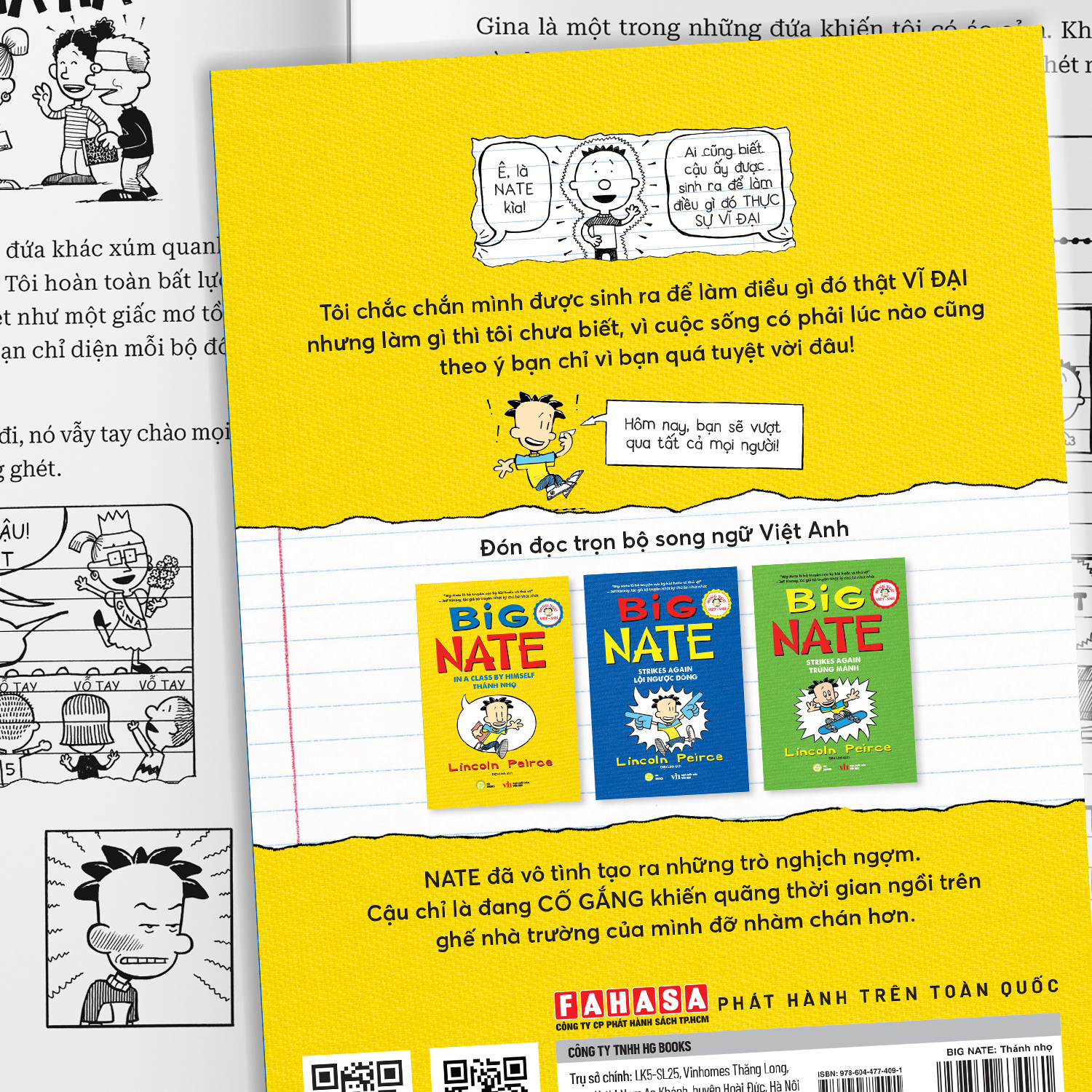 BIG NATE là bộ truyện tranh của nhà văn Mỹ Lincoln Peirce xoay quanh cậu bé Nate Wright, từ chuyện gia đình, bạn bè đến trường lớp cùng ti tỉ những rắc rối hài hước của cậu. Nếu ai đã từng say mê “Nhật ký chú bé nhút nhát” của Jeff Kinney thì không thể bỏ qua bộ truyện “mặn mòi” này với những hình vẽ ngộ nghĩnh cùng lời văn hóm hỉnh hết nước chấm đã làm nên tên tuổi của một Nate “Quậy” chính hiệu.