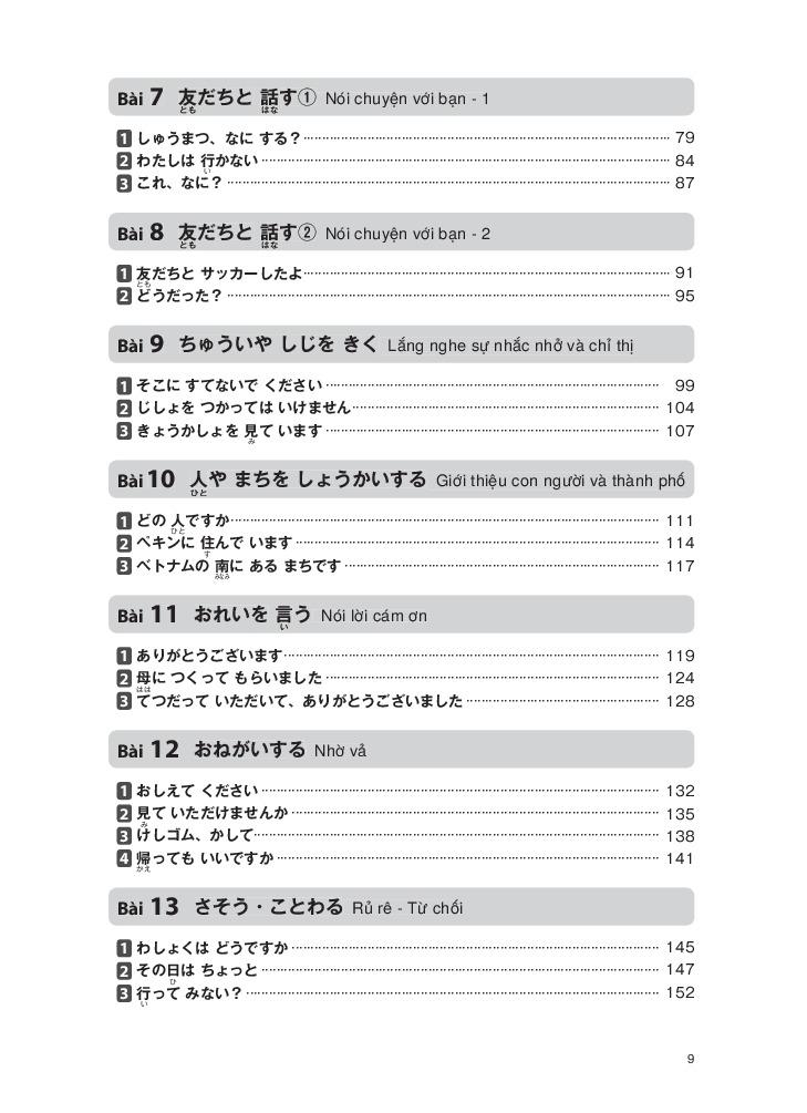 Giáo trình được biên soạn nhằm giúp người học giao tiếp bằng tiếng Nhật tốt hơn trong các hoạt động xã hội. Các tình huống học tập trong giáo trình là những tình huống thường được sử dụng để giao tiếp trên thực tế, được lựa chọn từ các lĩnh vực trong đời sống sinh hoạt, trường học và xã hội.