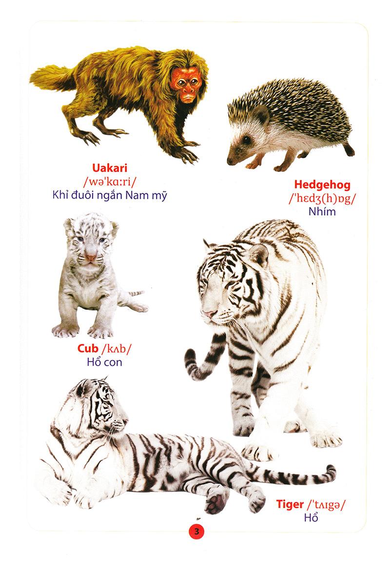 Cuốn sách không chỉ hỗ trợ bé học tiếng Anh nhanh và dễ dàng mà còn đem đến thế giới động vật phong phú, từ những vật nuôi quen thuộc trong đời sống hàng ngày đến các loài động vậ sống trong rừng, dưới biển. Hình minh họa sống động đi kèm với mỗi từ tiếng Anh (có phiên âm quốc tế, chú giải nghĩa tiếng Việt) sẽ giúp các bé dễ dàng làm quen, tra cứu, từ đó thích thú và học nhanh hơn.