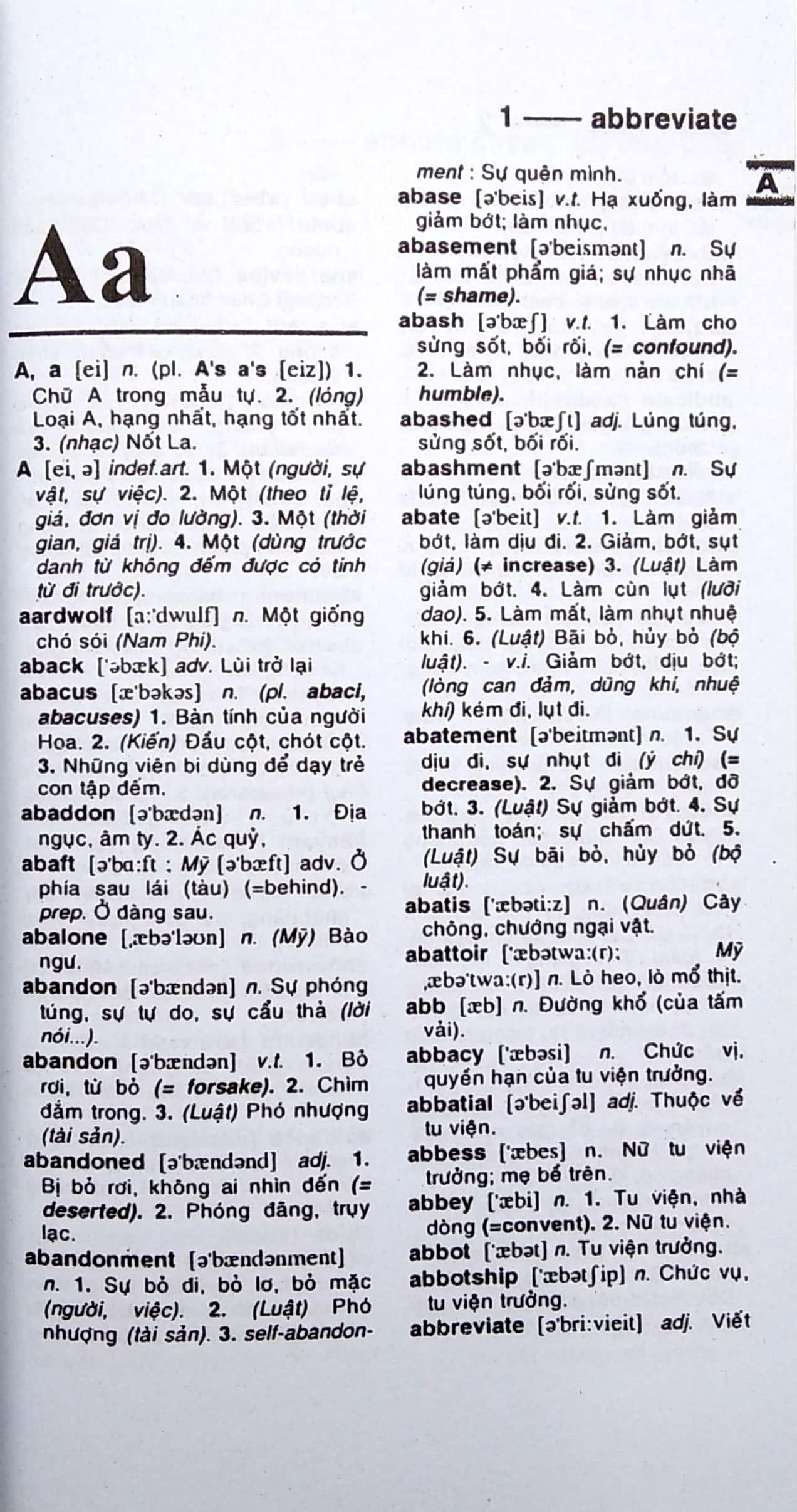 Nhằm đáp ứng nhu cầu học tiếng anh đa dạng của độc giả , chúng tôi đã biên soạn bộ từ điển Anh - Việt để phục vụ cho người học tiếng anh thuộc mọi