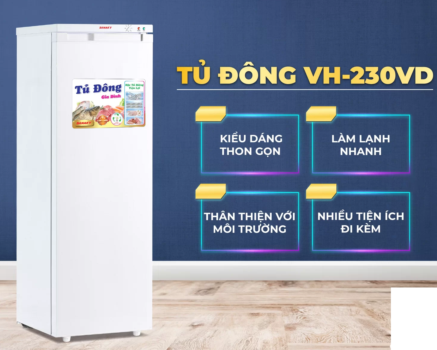 Tủ VH-230VD phù hợp cho các gia đình đặt trong nhà để có thể bảo quản lâu dài các loại thực phẩm như thịt, cá, gà,…