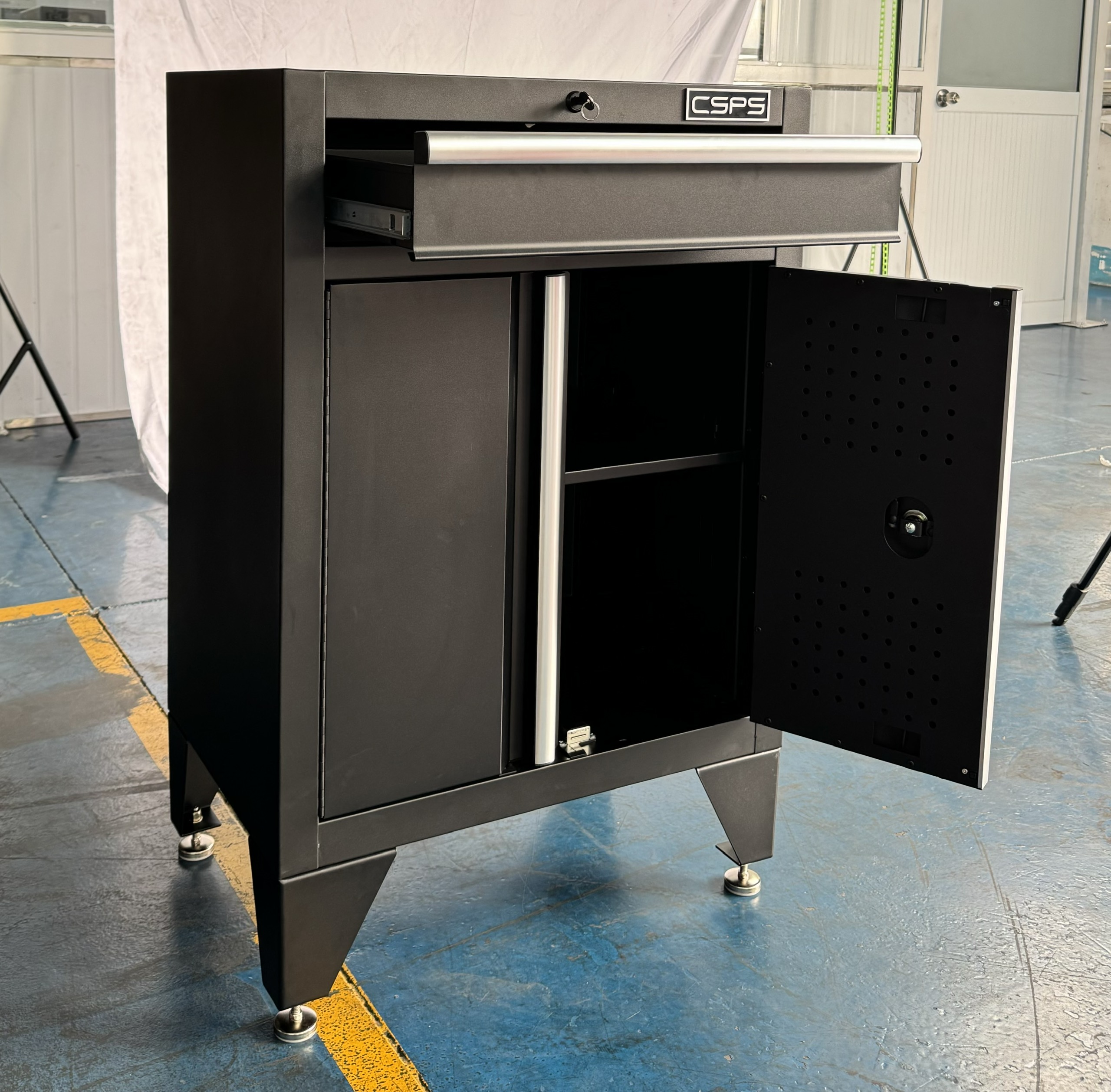 ✨Tủ dụng cụ CSPS 61cm - 01 hộc kéo màu đen, tay cầm trắng kèm chân tủ