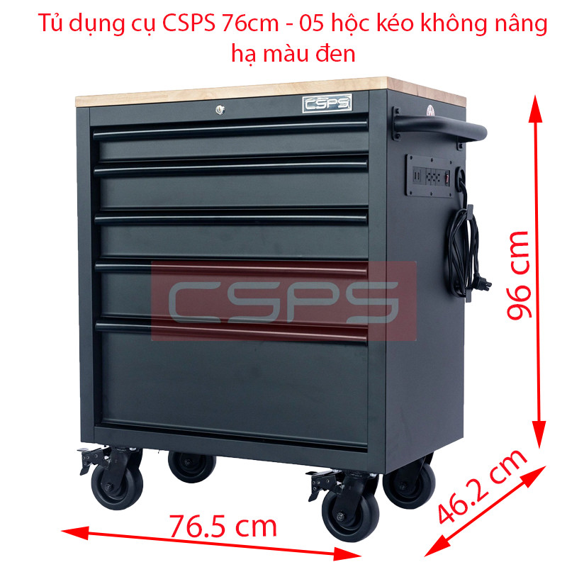 Tủ dụng cụ 7 ngăn kéo có mặt ván gỗ kèm ray đóng êm CSPS THÔNG SỐ KỸ THUẬT 1) THÔNG SỐ CHUNG Kích thước sản phẩm: 76,5 cm W x 46,2 cm D x