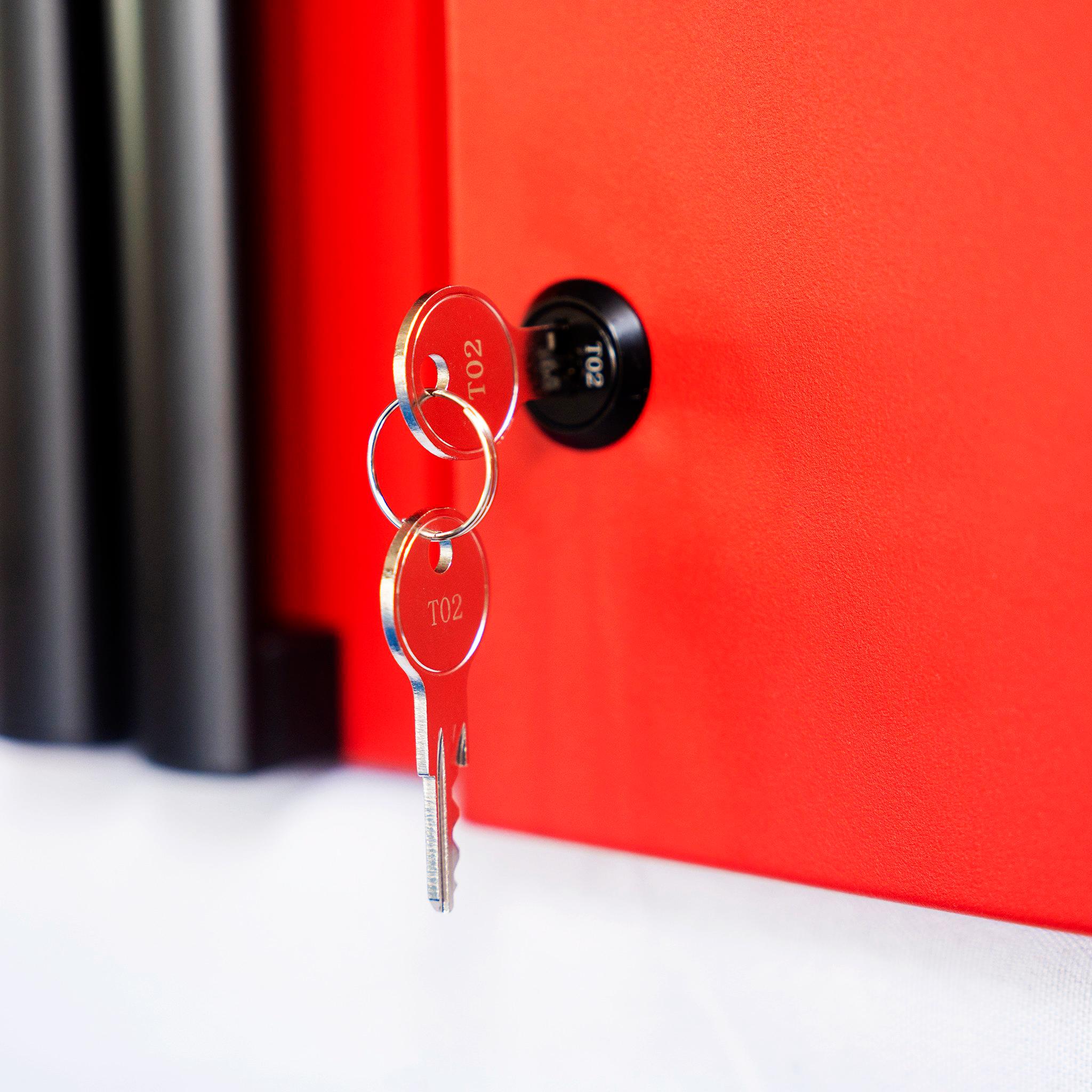Tủ dụng cụ CSPS 84cm - 04 hộc kéo màu đỏ 1. THÔNG SỐ CHUNG Kích thước sử dụng: 84cm Rộng x 51cm Sâu x 101cm Cao Khối lượng sử dụng: 52.9 kg Tổng chịu tải: