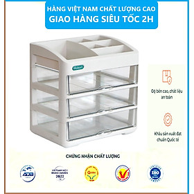 - * TỦ ĐỰNG MỸ PHẨM ĐỂ BÀN 3636 VIỆT NHẬT - Thiết kế vô cùng tiện dụng bao gồm : các ngăn kéo lớn để bạn đựng đồ dùng , trang sức và đồ