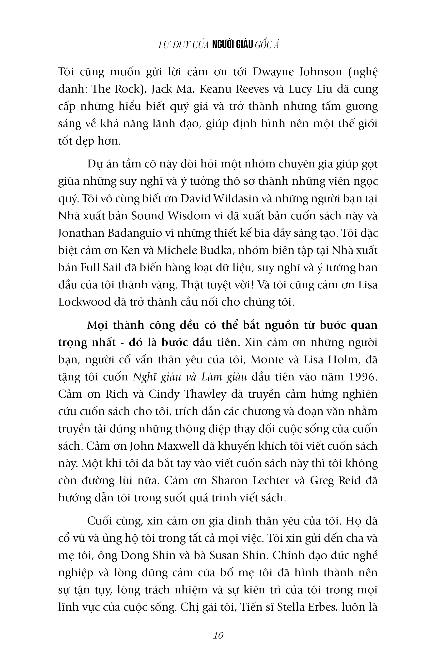 Tư duy của người giàu gốc Á sẽ cung cấp cho bạn những công cụ để loại bỏ những cái cớ và vượt qua những nỗi sợ hãi của bạn, để bạn có thể bắt đầu biến những ước mơ của mình thành hiện thực và trở thành con người bạn mong muốn.