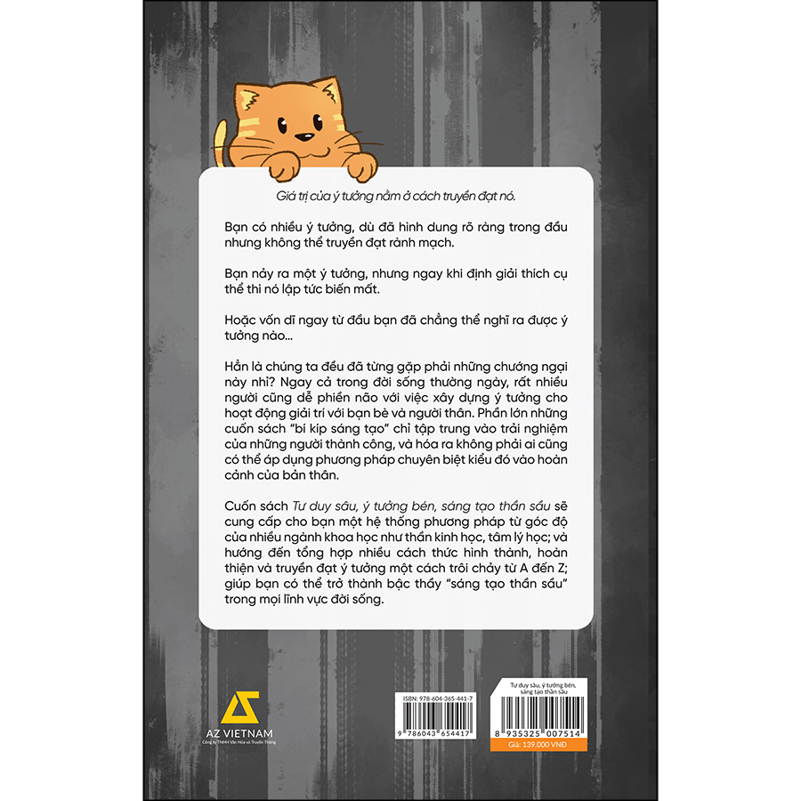Cuốn sách Tư duy sâu, ý tưởng bén, sáng tạo thần sầu sẽ cung cấp cho bạn một hệ thống phương pháp từ góc độ của nhiều ngành khoa học như thần kinh học, tâm lý học; và hướng đến tổng hợp nhiều cách thức hình thành, hoàn thiện và truyền đạt ý tưởng một cách trôi chảy từ A đến Z; giúp bạn có thể trở thành bậc thầy “sáng tạo thần sầu” trong mọi lĩnh vực đời sống.