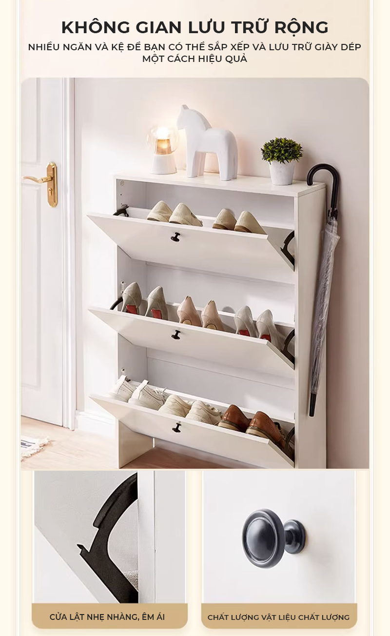Tủ giày thông minh 3 tầng cánh lật