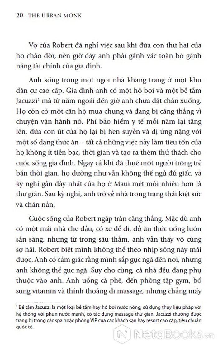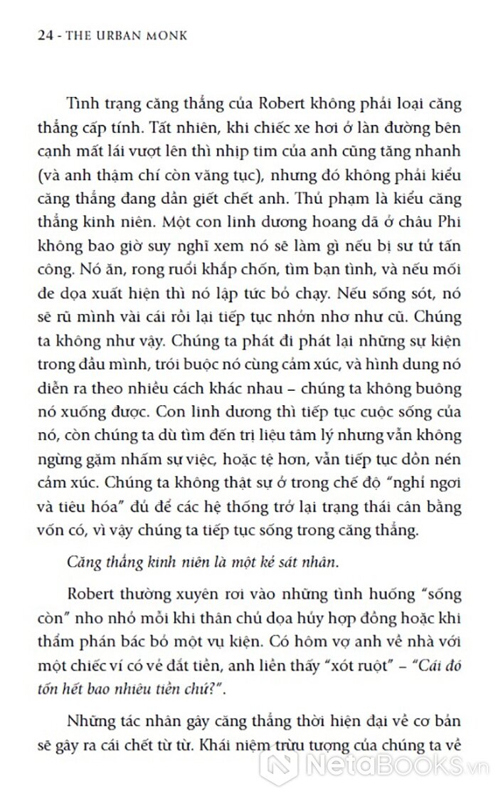 - Minh triết phương Đông trong đời sống hiện đại - Thế giới hiện đại, đặc biệt là n.hịp s.ống hối hả của môi trường đô thị khiến con người ngày càng mất kết nối với tự nhiên, rời xa bản chất đích thực để chạy theo các khuôn mẫu bên ngoài. Khủng hoảng của con người đô thị hiện đại diễn ra ở hầu hết các khía cạnh đời sống, khiến chúng ta kiệt sức, thiếu thời gian, rơi vào lối sống trì trệ, chán ghét bản thân và không tìm thấy ý nghĩa sống. Pedram Shojai – một tu sĩ Đạo giáo và môn sinh Phật giáo, đã xác định gốc rễ các khủng hoảng của con người đô thị đều bắt nguồn từ lối sống không lành mạnh và tình trạng căng thẳng không thể kiểm soát. Trong cuốn sách “Tu giữa đời thường” (tựa gốc: “The Urban Monk”), ông đã lên một chương trình cải thiện lối sống toàn diện thông qua minh triết và các phương pháp thực hành phương Đông, từ thiền định, khí công đến các ứng dụng Đông y. Thấu hiểu n.h.ị.p s.ố bận rộn của con người thời hiện đại, Pedram Shojai không đòi hỏi bạn đọc phải tham dự các khóa tu thiền, xuất gia hay theo đuổi một lối tu hành khổ hạnh, mà cung cấp giải pháp cho những vấn đề thiết thực đang diễn ra hằng ngày. Tác giả đã đề ra chương trình cải thiện lối sống giúp bạn sống chậm lại, có thêm năng lượng và tập trung vào những điều thực sự quan trọng. Nằm trong danh sách “Những cuốn sách bán chạy nhất” của tờ New York Times, “Tu giữa đời thường” giúp người đọc khai mở nhận thức và sức mạnh vốn có của bản thân, tìm thấy bản chất chân thật của mình thông qua các bài tập thực hành, giúp người đọc biết cách lèo lái để vượt qua những giai đoạn gập ghềnh trong đời. Những đúc kết đầy minh triết từ kho tàng trí tuệ phương Đông và các bài tập thực hành vô giá của ông nhằm giúp mỗi người tìm được sự bình an và trật tự ngay trong thế giới mà họ đang sống. Cuốn sách gồm mười chương, mỗi chương đề cập đến một vấn đề chính yếu của cuộc sống mà hầu hết chúng ta gặp phải trong thế giới hiện đại, như: áp lực, sự eo hẹp về thời gian, thiếu năng lượng, các vấn đề về giấc ngủ, lối sống trì trệ, chế độ ăn uống kém lành mạnh, mất kết nối với tự nhiên, cô đơn, các vấn đề tiền bạc, thiếu ý nghĩa và mục đích sống. Mở đầu mỗi chương là câu chuyện của một bệnh nhân đại diện cho một “chứng bệnh thành thị” điển hình mà người đó gặp phải. Đó có thể là nỗi sợ thiên nhiên của chàng trai thành thị Ethen, cuộc sống ngập tràn căng thẳng của anh chàng luật sư Robert, tình cảnh “túng thiếu thời gian” của bà mẹ hai con Ashley, hay lối sống trì trệ bám lấy cô nhân viên văn phòng Stacy… Những trường hợp này được tác giả chọn lọc cẩn thận trong hàng nghìn buổi gặp gỡ giữa ông với các bệnh nhân suốt nhiều năm qua, với kiến thức chuyên môn của một bác sĩ và sự thông tuệ của một tu sĩ. Mỗi một chương, tác giả đều nêu “Vấn đề”, giúp người đọc nhận diện bản chất của tình huống và phân tích nó theo những góc nhìn mới mẻ. Để giúp người đọc thấy được lối ra của vấn đề, tác giả đã đúc kết từ triết lý bí truyền của các nền văn hóa phương Đông, cung cấp cho độc giả một cách nhìn khác về các vấn đề của bản thân trong phần “Minh triết dành cho người tu tại thị”. Pedram Shojai cũng giới thiệu “Các phương pháp thực hành phương Đông”, đúc kết từ kho tàng trí tuệ cổ xưa và những truyền thống lâu đời – những phương pháp thực hành đã được chứng nghiệm là đơn giản, tao nhã và có hiệu quả đối với con người hàng ngàn năm qua. Phần “Các chiêu thức tu tập thời hiện đại” sẽ gồm các bài tập thực hành, các ứng dụng và kỹ thuật hiệu nghiệm cho những vấn đề đặc trưng của thời đại mà chúng ta đang phải đối mặt. Cuối cùng, mỗi chương được khép lại bằng “Kế hoạch hành động”, với giải pháp cụ thể. Theo tác giả các bài luyện tập trong sách là phương pháp thực hành chuyên sâu, nó có thể đưa ra một kế hoạch hành động, lịch trình và một khung tham chiếu giúp bạn thành công. Tự nhận mình là một tu sĩ sống giữa chốn thị thành, một người “tu giữa đời thường”, Pedram Shojai xem cuộc sống như một dòng chảy tuyệt vời của những trải nghiệm, những bài học, những cuộc phiêu lưu và cơ hội để lan toả lòng tốt đến bất cứ nơi nào mà ta hiện diện. Tác giả hy vọng, thông qua cuốn sách “Tu giữa đời thường”, bạn đọc sẽ học được cách thoát khỏi những khủng hoảng của con người chốn thành thị để tìm thấy chính mình và sống một cuộc đời trọn vẹn. Người nổi tiếng nói gì về tác phẩm