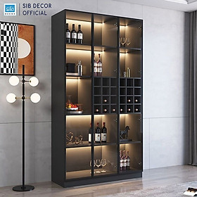 ✨Tủ Gỗ Để Vang Trưng Bày Phối Cánh Kính Dài 120cm, Kèm Đèn LED Hiện Đại Thương Hiệu SIB Decor TR06