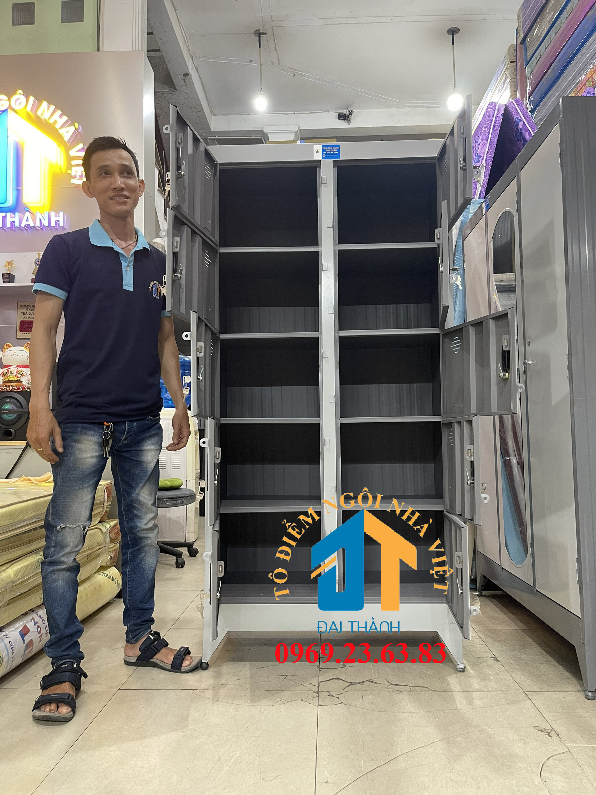 Mua tại TiktokMàu sắc: xám ghi. Kích thước ; Rộng 90cm X Cao 1m8 X Sâu 45cm . Cấu tạo: 10 cửa + Tủ được làm từ chất liệu sắt sơn chống gỉ sét + Tủ có màu chính là màu xám ghi