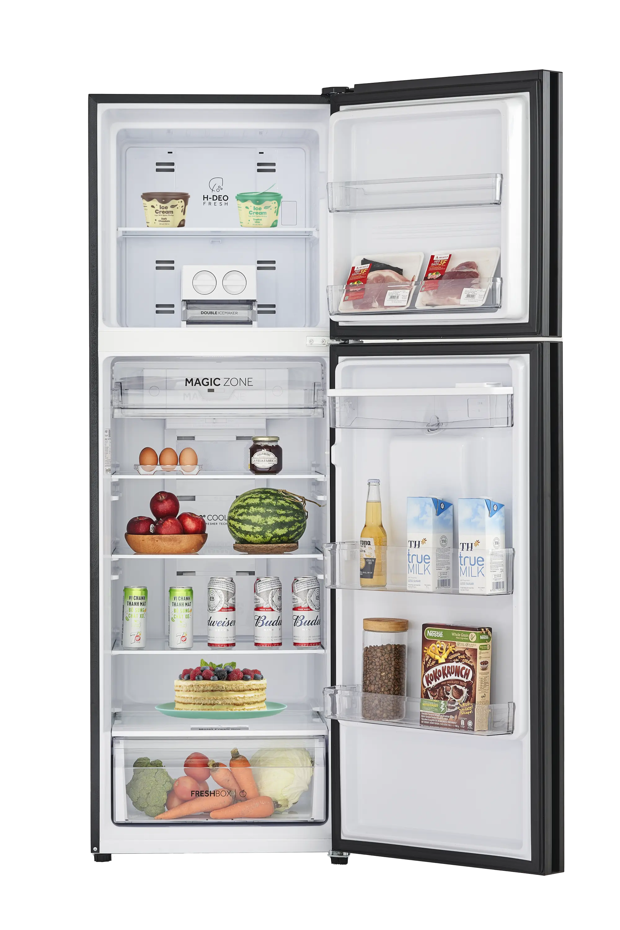 TỔNG QUAN: Dung tích sử dụng: 358 lít Dung tích ngăn đá: 91 lít Dung tích ngăn lạnh: 267 lít Công nghệ Inverter: Twin Inverter Điện năng tiêu thụ: Khoảng 1.06 kw/ngày Công nghệ làm lạnh: Làm lạnh gián tiếp Công nghệ kháng khuẩn, khử mùi: Deo Fresh Công nghệ bảo quản thực phẩm: Làm lạnh đa chiều giúp thực phẩm tươi ngon * Freeship toàn quốc, đối với khu vực đảo khách hàng sẽ phải thanh toán thêm phí tàu ra
