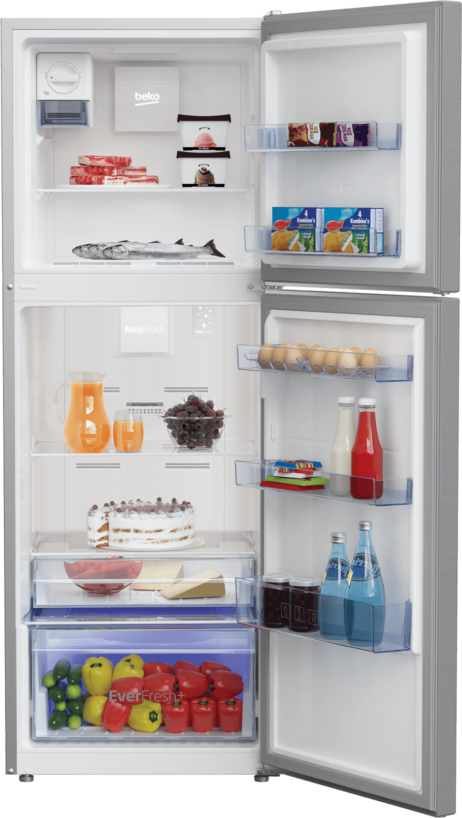 Trong tủ lạnh thông thường, một hệ thống làm lạnh phục vụ cả hai ngăn: lưu thông không khí bên trong tủ đông và ngăn mát, dễ làm mất hơi ẩm của ngăn mát. Hai hệ thống làm mát riêng biệt trong tủ lạnh Beko RDNT340I50VZX giữ độ ẩm ở mức độ tối ưu (lên đến 90%) giữ cho độ tươi của thực phẩm lâu hơn. Bên cạnh đó, không khí luân chuyển trong từng ngăn sẽ ngăn việc truyền mùi giữa hai ngăn và giúp chất lượng không khí bên trong luôn ở mức tốt nhất. Công nghệ không đóng tuyết thế hệ mới giúp làm lạnh ổn định.