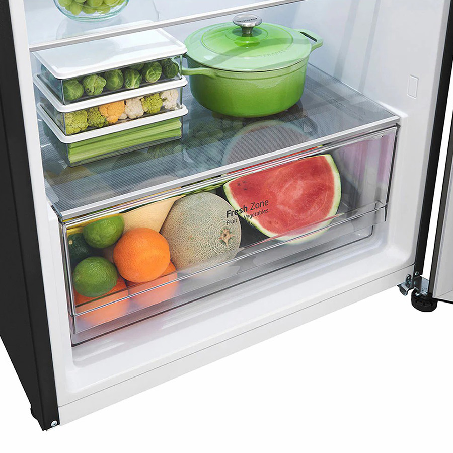 Tủ lạnh LG Inverter 374 lít GN-D372BLA sở hữu kiểu dáng thon gọn, gam màu đen sang trọng kết hợp với mặt cửa tủ là thép không gỉ tạo được độ bóng cao cho tủ. Là kiểu tủ ngăn đá trên quen thuộc nên dễ dàng kết hợp với gian bếp của gia đình Việt.