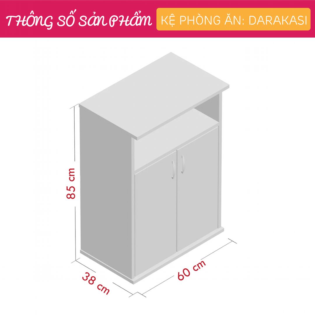Tủ phòng ăn gỗ SMLIFE Darakasi là lựa chọn hoàn hảo nhất cho những gia đình có không gian phòng bếp nhỏ. Tủ bếp gia đình SMLIFE có kích thước nhỏ gọn nhưng vẫn đảm