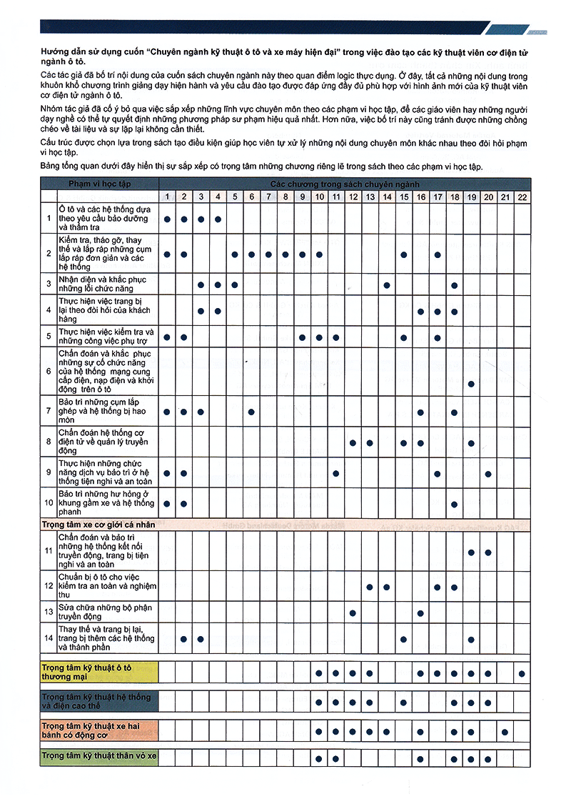 Chuyên ngành Kỹ thuật Ô tô và xe máy hiện đại là giáo trình về kỹ thuật ô tô và xe máy hiện đại, từ cơ chế vận hành, cấu tạo máy móc, khả năng ứng dụng đến việc bảo quản, bảo trì, thông tin khác hà giúp học viên và độc giả biết rõ hơn về cách thức hoạt động của ô tô và xe máy hiện đại.