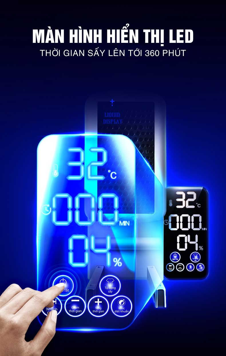 Sản phẩm có thiết kế thông minh. Bảng đèn LED kết nối với động cơ sấy hiển thị rõ ràng, dễ dàng điều khiển, lựa chọn các chức năng phù hợp