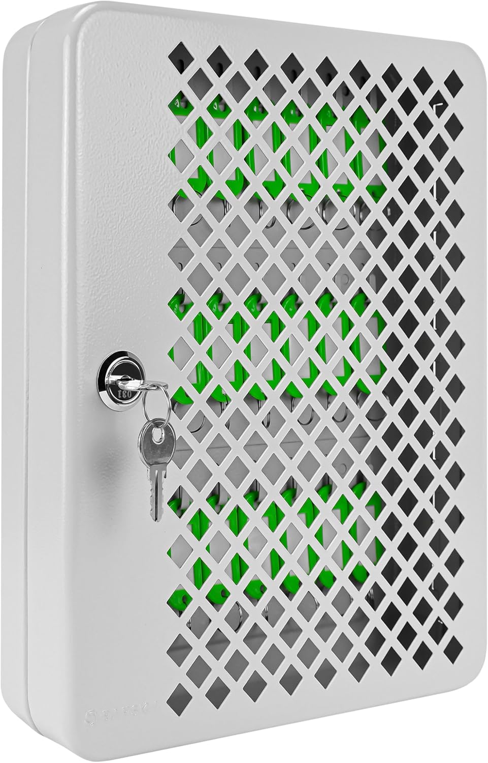 Tủ khóa mặt trước dạng lưới của Barska có tủ dạng móc giúp sắp xếp chìa khóa dễ dàng và tiện lợi. Bên trong tủ khóa này có ba hàng móc. Cửa dạng lưới cho phép nhận dạng ngay lập tức các móc rỗng. Các két an toàn có bốn lỗ lắp được khoan sẵn và phần cứng đi kèm để lắp đặt. Thành tủ và cửa được làm bằng thép đặc 0,8mm và được hoàn thiện bằng lớp phủ màu xám phẳng.