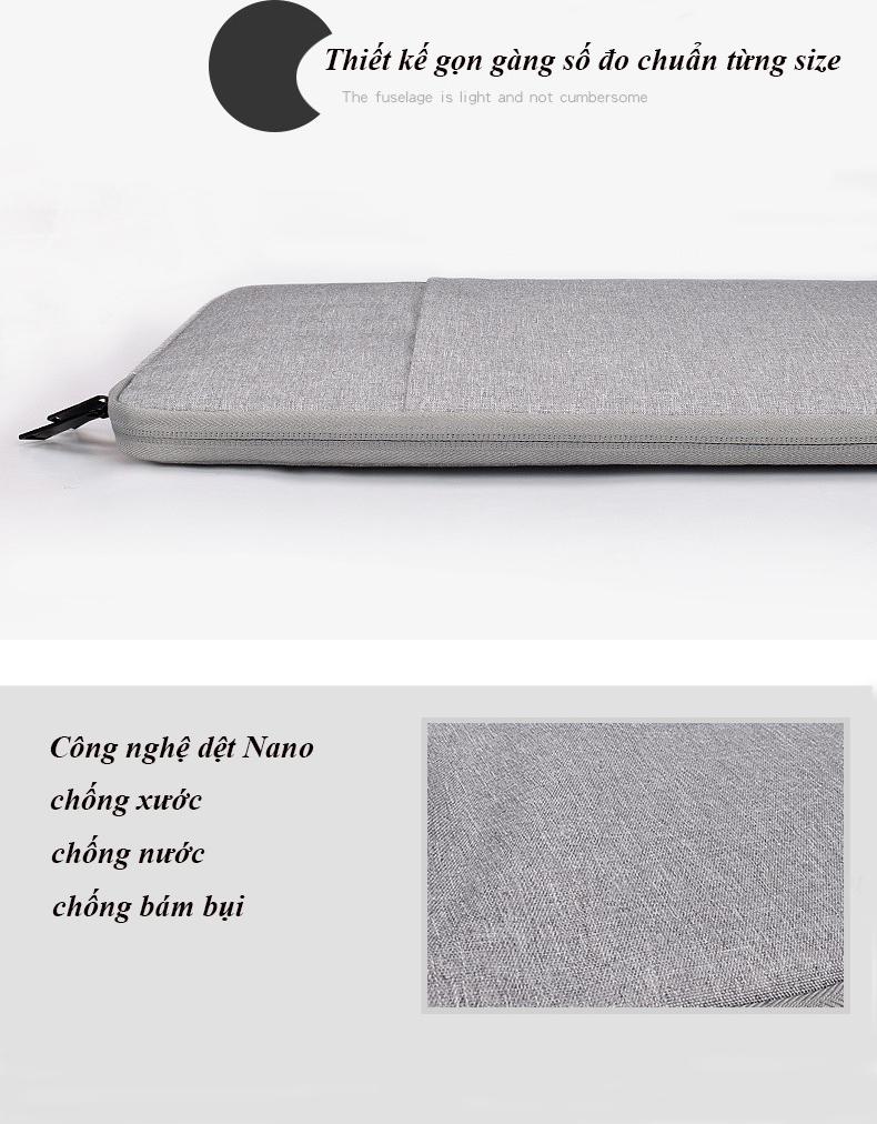- Túi Chống Sốc dành cho Macbook Laptop - Xám Đậm được may từ chất liệu vải chống thấm nước có lớp lót lông tuyết mềm mại, đảm bảo độ dày dặn, bền đẹp. Chất liệu