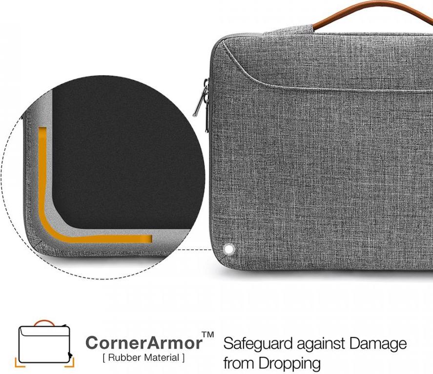 – Sử dụng công nghệ sáng chế tiên tiến của Hoa Kỳ CornerArmor trang bị phía dưới túi chống sốc một lớp đệm bảo vệ 360 xung quanh vành túi một cách an toàn như một túi khí xe hơi.– Thiết kế 2-trong-1: Mỏng và nhẹ, có thể dùng kết hợp với một chiếc Ốp nhựa theo yêu thích của bạn để bảo vệ tốt hơn cho chiếc Macbook của bạn; Đi kèm với một tay cầm ở mặt sau cho phép bạn dễ dàng mang nó đến bất cứ nơi nào.– Công nghệ Ultra-Secure : Vành xung quanh chống sốc bằng chấtl liệu Polyester được thiết kế đàn hồi tỉ mỉ kết hợp với khóa dây bên trong khoang chính mở 180 ° bảo vệ máy tính xách tay của bạn không bị rơi đột ngột. Bên trong trang bị lớp đệm bảo vệ đủ dày đảm bảo máy tính xách tay của bạn không bị va đập, vết trầy xước– Tính linh hoạt – Ngoại trừ khoang chính cho máy tính xách tay của bạn, chiếc cặp này cũng có ngăn kéo lớn thứ hai để lưu trữ thêm như Sạc, Adapter, Chuột, tai nghe hay các vật dụng phụ kiện cá nhân khác,– Easy Glide – chiếc cặp này đi kèm với một dây kéo trượt dễ dàng chạy qua phía dưới và hai bên tăng thêm tính tiện lợi cho người dùng.– Kích thước mô hình phù hợp tối đa: 11.978.36*0.59 inch– Tương thích: Macbook Pro 13, 15'' 2016/2017/2018, DELL SPX 13, 15'', Surface Pro 4,5,6, vvv .– Trọng lượng: 8.4g– Thương hiệu chính Hãng Tomtoc (USA)
