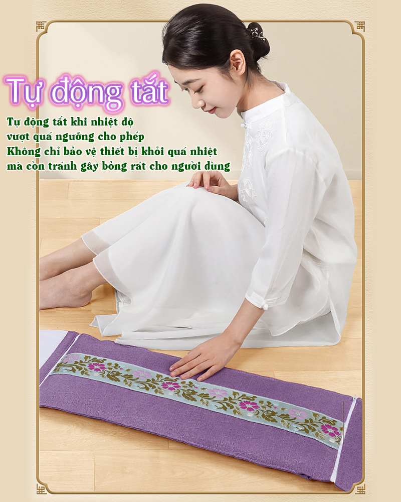 - Chất liệu vải lanh thoáng khí, hoa văn tinh tế Ưu điểm của đệm nhiệt nóng sưởi ấm toàn thân Nikio NK-202: Làm nóng muối nhanh chóng chỉ trong 2 phút Một trong những điểm nổi bật của đệm nhiệt sưởi Nikio NK-202 là khả năng làm nóng hạt muối nhanh chóng, chỉ trong 2 phút, giúp bạn tiết kiệm thời gian và có trải nghiệm chườm nóng tức thì. Điều này rất tiện lợi cho những người bận rộn nhưng vẫn muốn chăm sóc sức khỏe hàng ngày. Thiết kế dạng đai đeo tiện lợi với khóa Velcro Đệm nhiệt nóng Nikio NK-202 được thiết kế dưới dạng đai đeo, giúp dễ dàng điều chỉnh và cố định vào vùng cơ thể cần chườm nóng. Khóa Velcro chắc chắn đảm bảo đệm không bị xô lệch trong suốt quá trình sử dụng, mang lại cảm giác thoải mái và an toàn. Chườm nóng bằng muối biển tốt cho sức khỏe Sử dụng muối biển trong chườm nóng đã được chứng minh mang lại nhiều lợi ích cho sức khỏe như giảm đau nhức cơ, tăng cường lưu thông máu, hỗ trợ phục hồi sau chấn thương và làm dịu các cơn đau mãn tính. Thảm chườm nóng Nikio NK-202 tận dụng hoàn hảo các công dụng của muối biển, biến việc chăm sóc sức khỏe trở nên hiệu quả hơn. Hạt muối đồng đều, truyền nhiệt và giữ nhiệt tốt Hạt muối trong đệm nhiệt Nikio NK-202 được chọn lọc kỹ lưỡng với độ đồng đều cao, giúp truyền nhiệt và giữ nhiệt tốt hơn so với các loại muối thông thường. Nhờ vậy, người dùng có thể tận hưởng cảm giác ấm áp dễ chịu trong suốt quá trình sử dụng. Muối sạch và có độ tinh khiết cao, chống ẩm tốt Muối biển được sử dụng trong đệm sưởi ấm Nikio NK-202 không chỉ sạch mà còn có độ tinh khiết cao, đảm bảo an toàn cho sức khỏe người dùng. Hơn nữa, muối có khả năng chống ẩm tốt, giúp kéo dài tuổi thọ sản phẩm và giữ hiệu quả chườm nóng lâu hơn. 11 mức nhiệt tùy chỉnh linh hoạt từ 35 đến 48°C Đệm nhiệt nóng sưởi ấm toàn thân Nikio NK-202 được thiết kế 11 mức nhiệt linh hoạt, tùy chỉnh từ 35 đến 48°C, phù hợp với nhu cầu và tình trạng sức khỏe của mỗi người. Dù bạn cần nhiệt độ thấp để thư giãn nhẹ nhàng hay nhiệt độ cao để chườm nóng chuyên sâu, Nikio NK-202 đều có thể đáp ứng. Tự động tắt khi nhiệt độ vượt quá quy định Để đảm bảo an toàn tuyệt đối cho người dùng, đệm sưởi ấm Nikio NK-202 được trang bị tính năng tự động tắt khi nhiệt độ vượt quá ngưỡng cho phép. Tính năng này không chỉ bảo vệ thiết bị khỏi quá nhiệt mà còn tránh gây bỏng rát cho người dùng. Hẹn giờ chườm linh hoạt: 30, 45, 60 và 90 phút Đệm nhiệt sưởi Nikio NK-202 cho phép bạn tùy chỉnh thời gian chườm nóng với 4 mốc thời gian: 30, 45, 60 và 90 phút. Đây là tính năng lý tưởng cho những người bận rộn, giúp kiểm soát thời gian chườm một cách hiệu quả. Remote điều khiển đơn giản, dễ sử dụng Sản phẩm đi kèm với remote điều khiển tiện lợi, giúp bạn dễ dàng điều chỉnh các mức nhiệt và hẹn giờ chườm mà không cần phải cúi xuống. Điều này mang lại sự thoải mái tối đa khi sử dụng. Chất liệu vải lanh thoáng khí, hoa văn tinh tế Túi chườm nóng muối biển Nikio NK-202 không chỉ chú trọng đến tính năng mà còn quan tâm đến thẩm mỹ và sự thoải mái. Với chất liệu vải lanh thoáng khí, hoa văn trang nhã, sản phẩm mang lại cảm giác dễ chịu khi tiếp xúc với da, đồng thời tạo nên nét sang trọng cho không gian sống của bạn. Hướng dẫn sử dụng đệm nhiệt nóng sưởi ấm toàn thân Nikio NK-202: