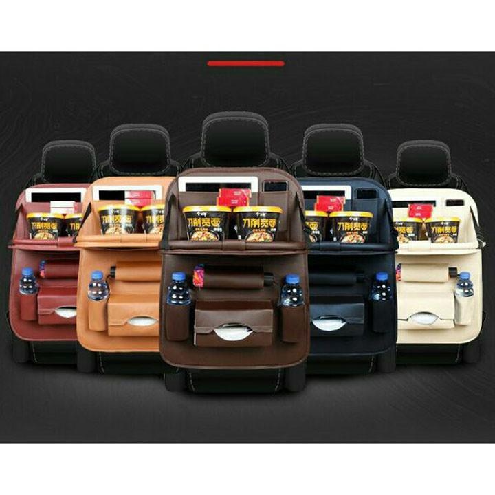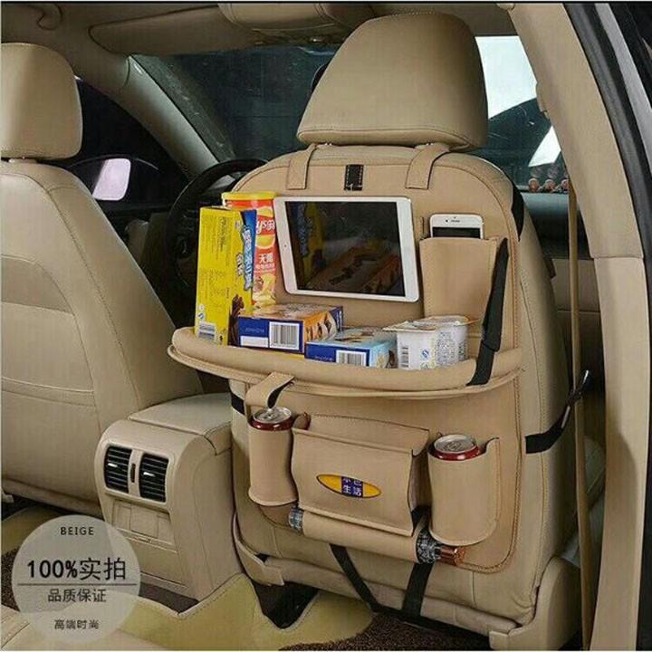 Túi da đựng đồ đa năng treo sau ghế Ô tô, Xe hơi – Tích hợp bàn ăn tiện lợi. Sản phẩm vừa là túi đựng đồ vừa có tác dụng mở ra thành chiếc