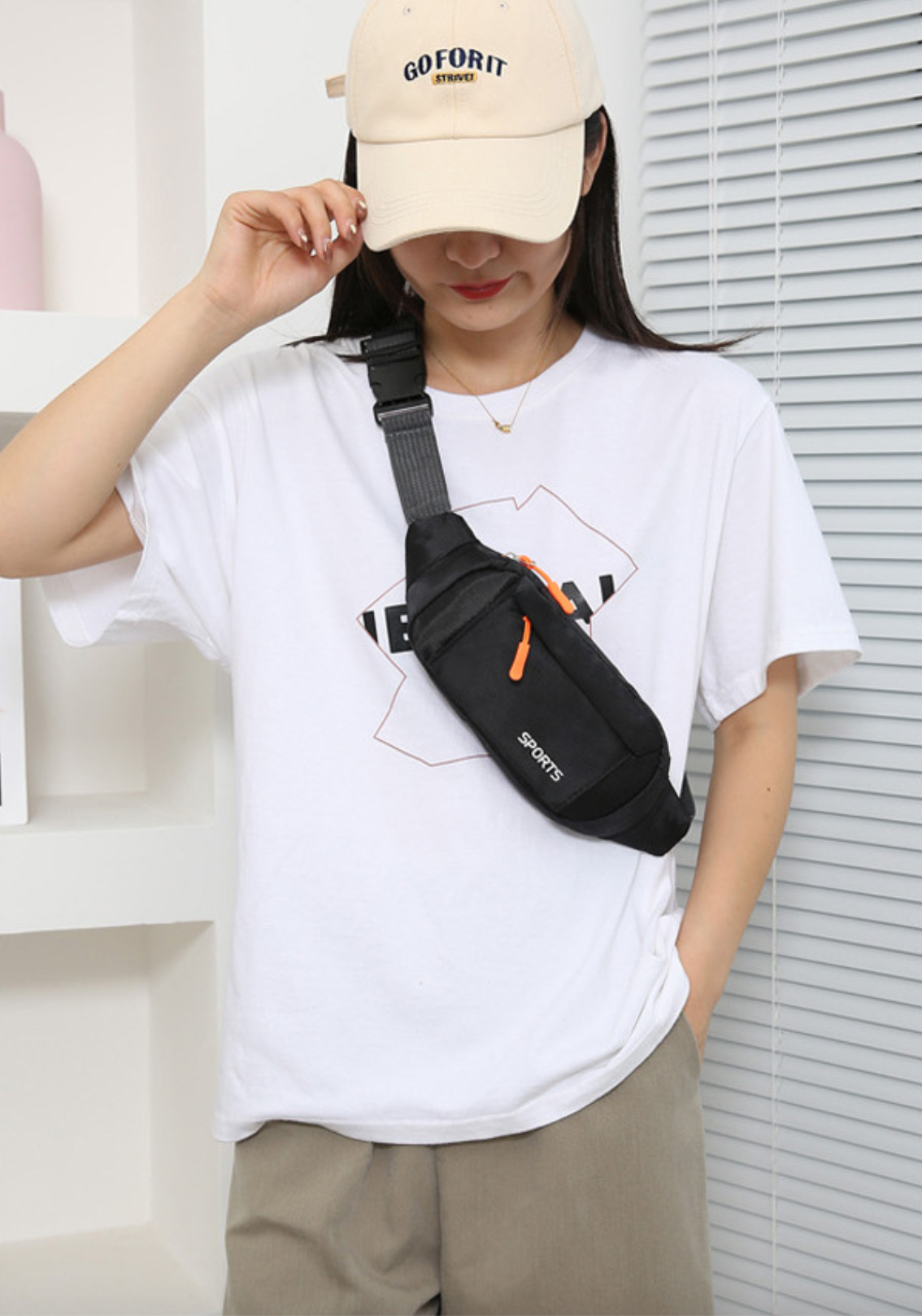 Túi Bao Tử Đeo Ngực Nhỏ Mini Trơn Màu Đen Giản Dị Dành Cho Nam Nữ Chất Liệu Nylon Chống Nước