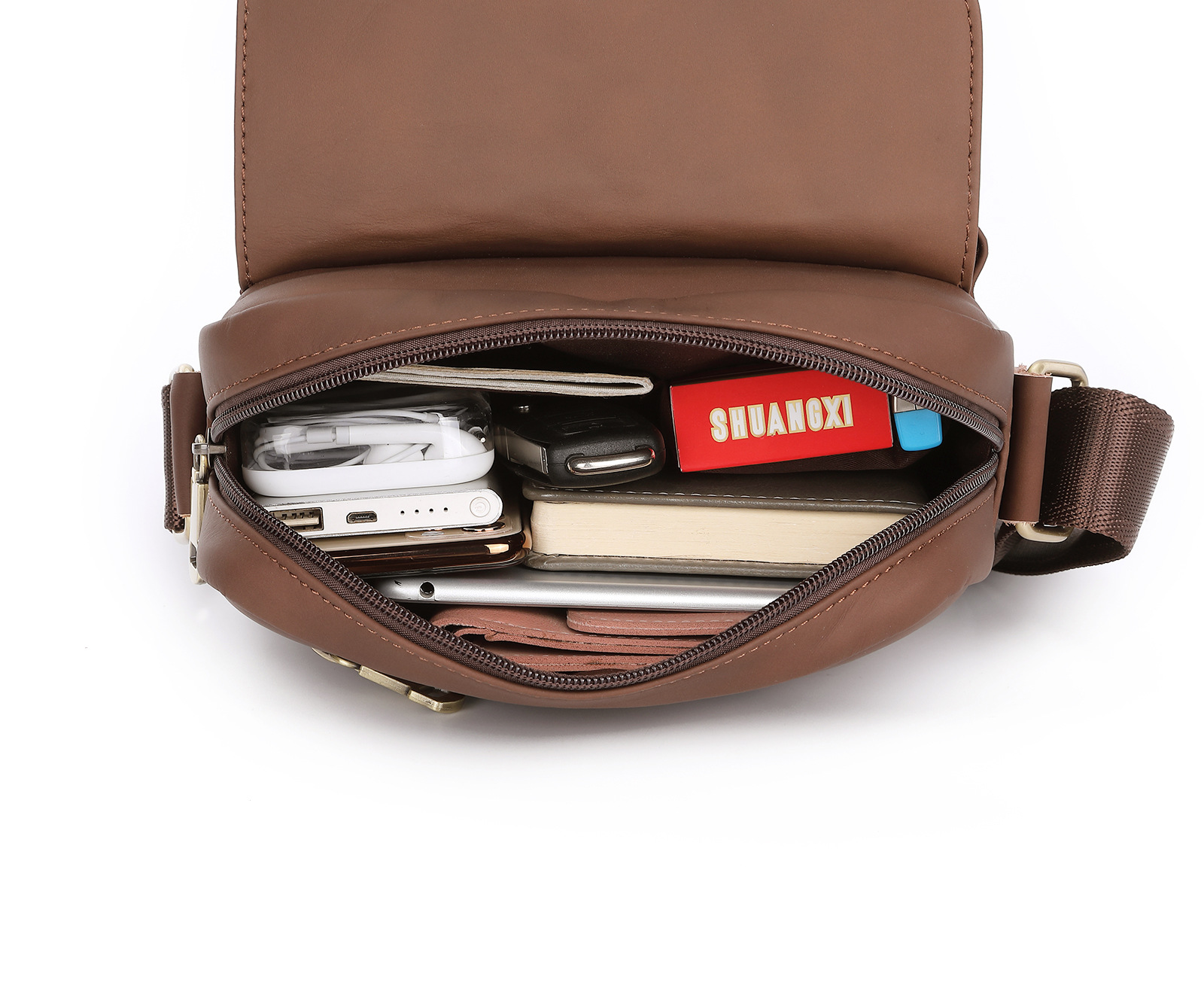 [Da thật] Túi đeo chéo nam da bò sáp TD147 (Nâu sáp) - 100% da thật, BH 3 năm