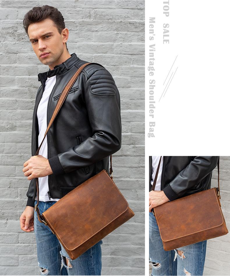 Túi đeo chéo nam BHM1136 chuẩn DA BÒ SÁP THÔ nguyên tấm, vừa A4, laptop 12" #tuideocheonam #tuinam
