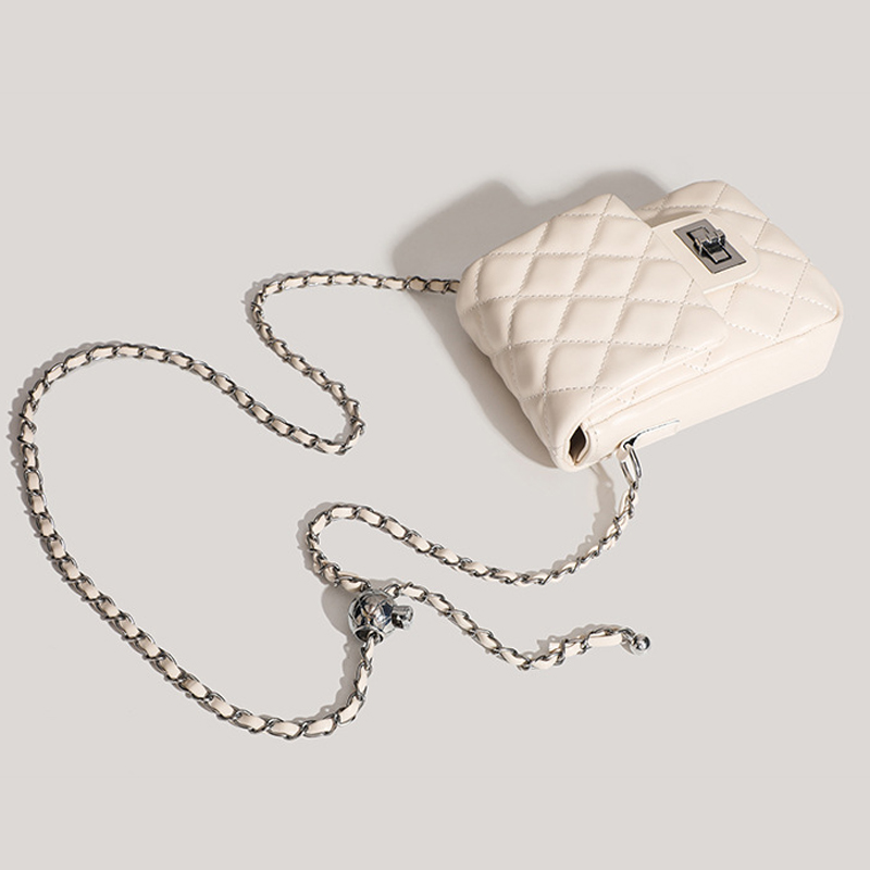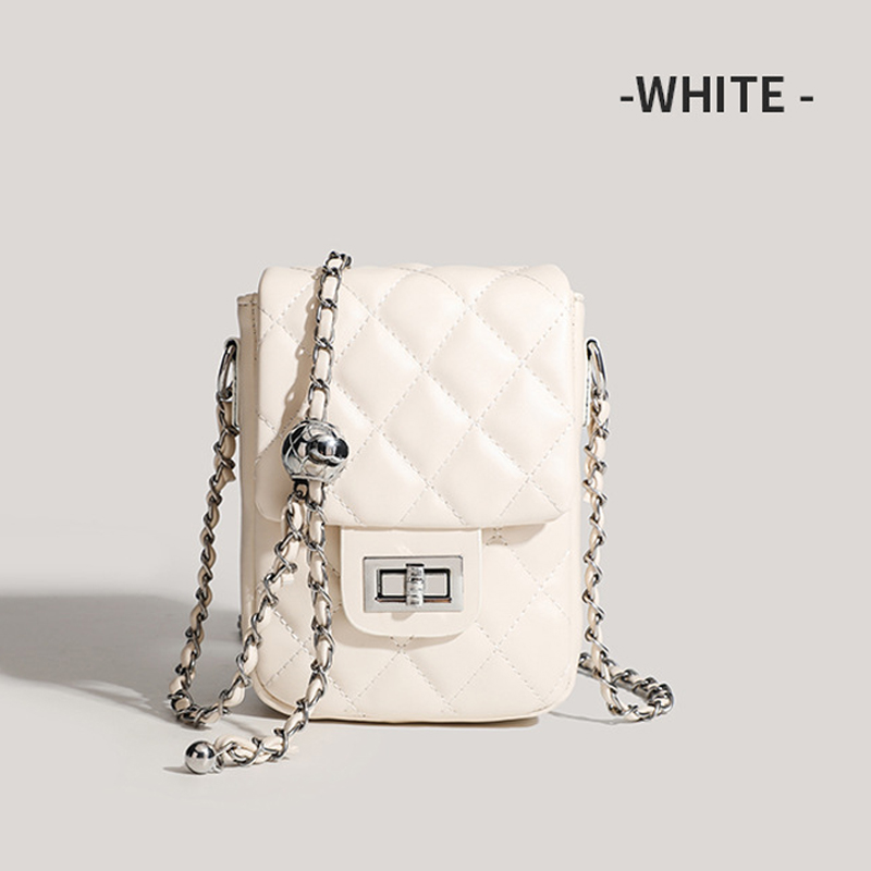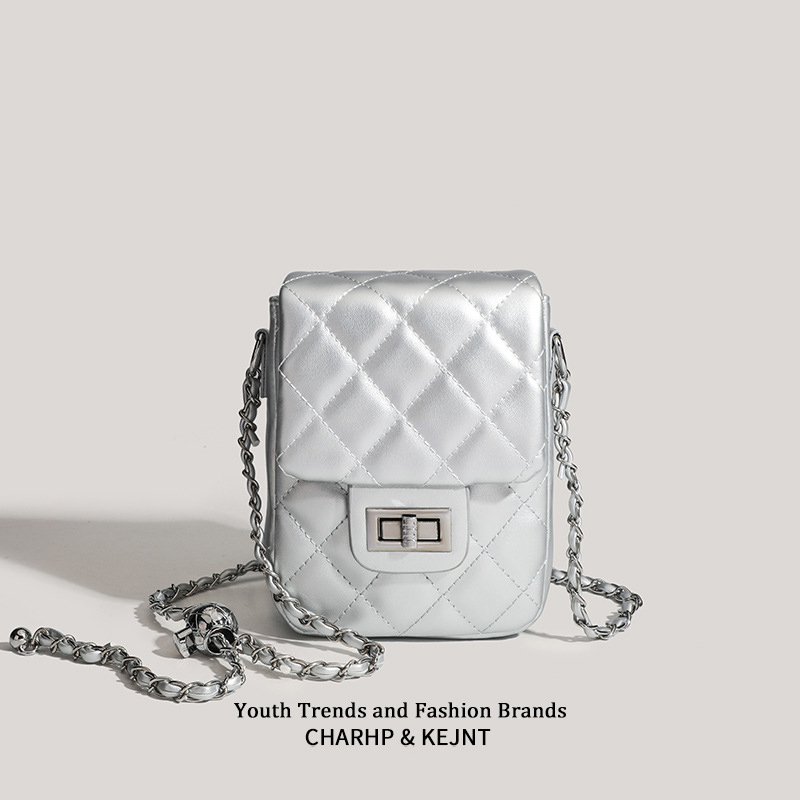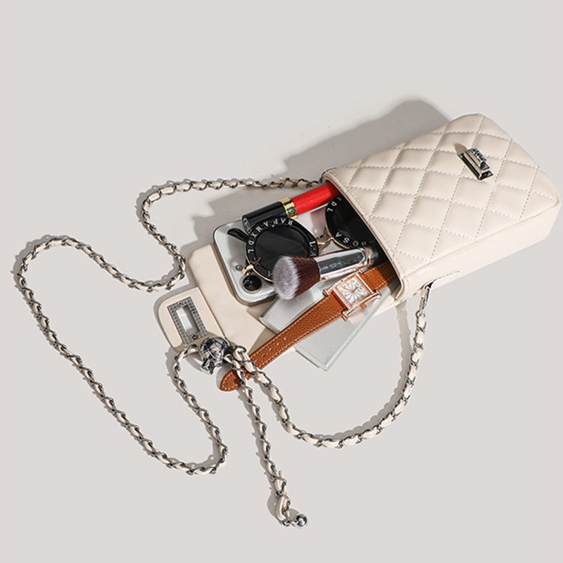 Mẫu túi đeo chéo Yuumy Seasand YN280 thời thượng với thiết kế chần bông quả trám sang chảnh và dây đeo kim loại ánh bạc tinh tế. Chất da mềm mại, form túi vừa vặn,