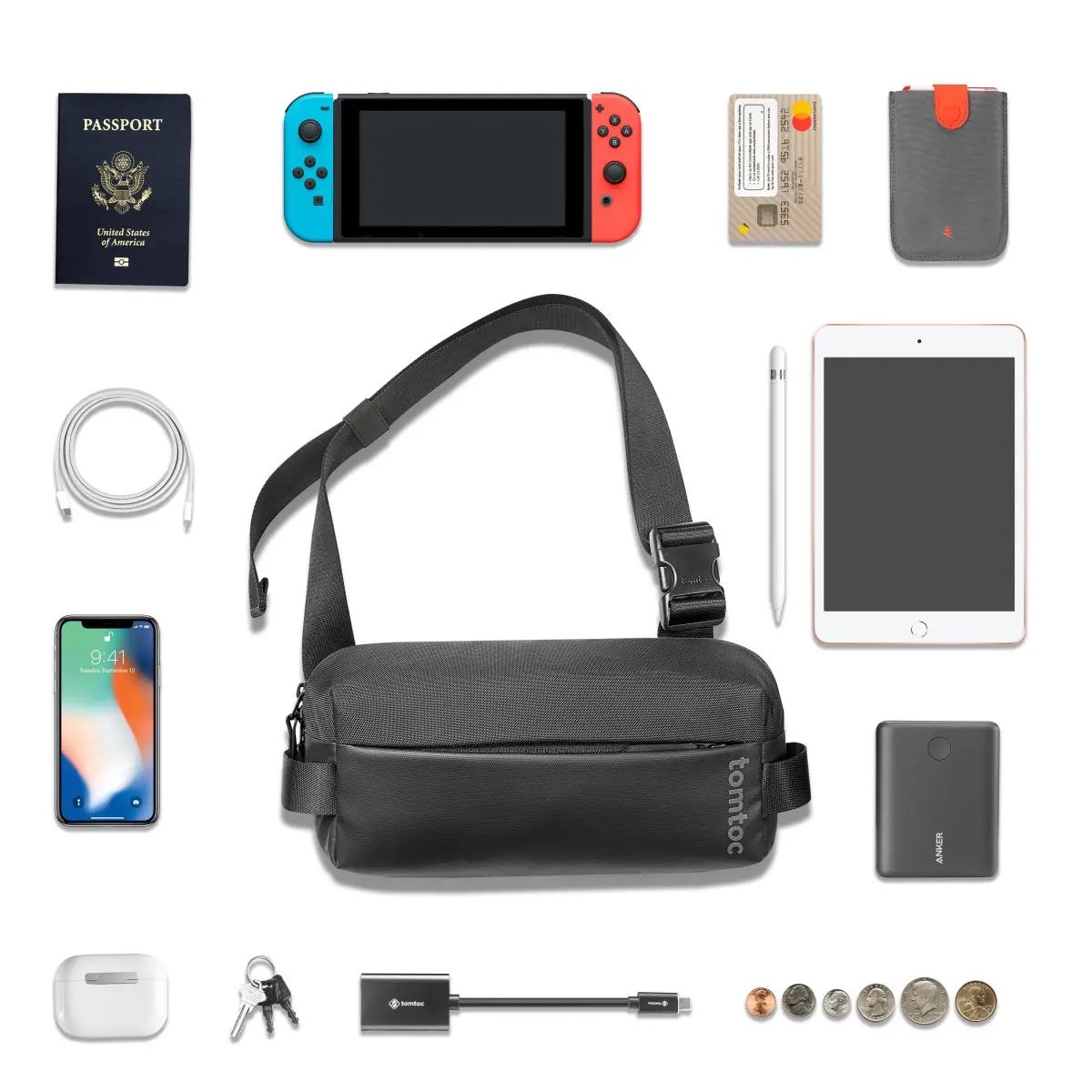 Túi đeo chéo phụ kiện chính hãng TOMTOC (USA) G-Sling Bag Nintendo Switch A0532D1 TOMTOC (USA) là một thương hiệu nổi tiếng ở Mỹ, ra đời đầu năm 2015 chuyên sản xuất những sản phẩm như túi chống sốc, túi