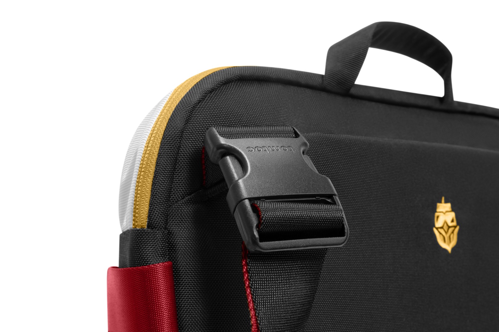 Mỗi yếu tố, kể cả dây đeo vai, đều có màu sắc đỏ và đen tượng trưng cho lòng dũng cảm không thể sánh bằng của các hiệp sĩ chiến đấu với quái vật!