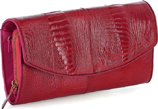Bóp/Ví da đà điểu Huy Hoàng da chân kiểu đứng màu nâu đỏ, vàng bò, đen, nâu đất 2411-12-13-15
