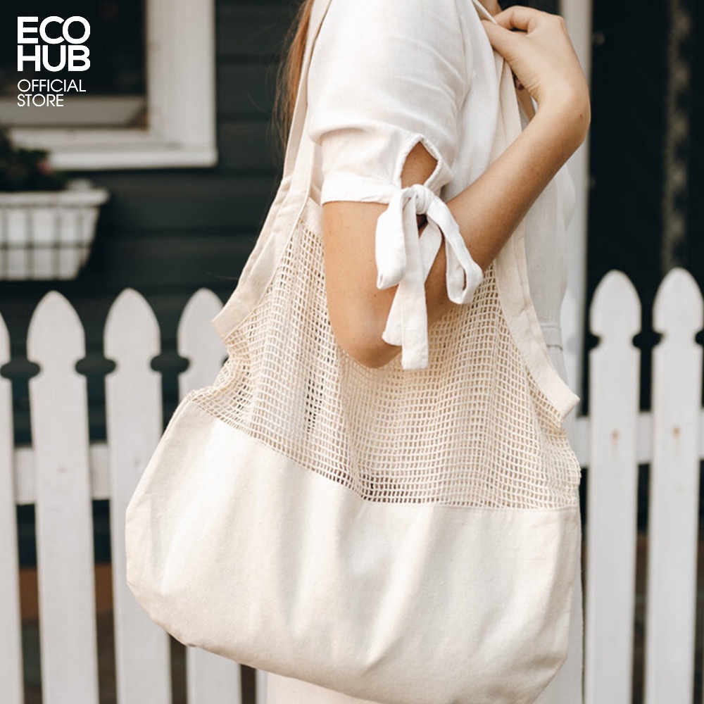 ✨Túi đeo vai ECOHUB bằng vải phong cách màu be thích hợp đi chợ, mua sắm, dạo chơi trên đường phố